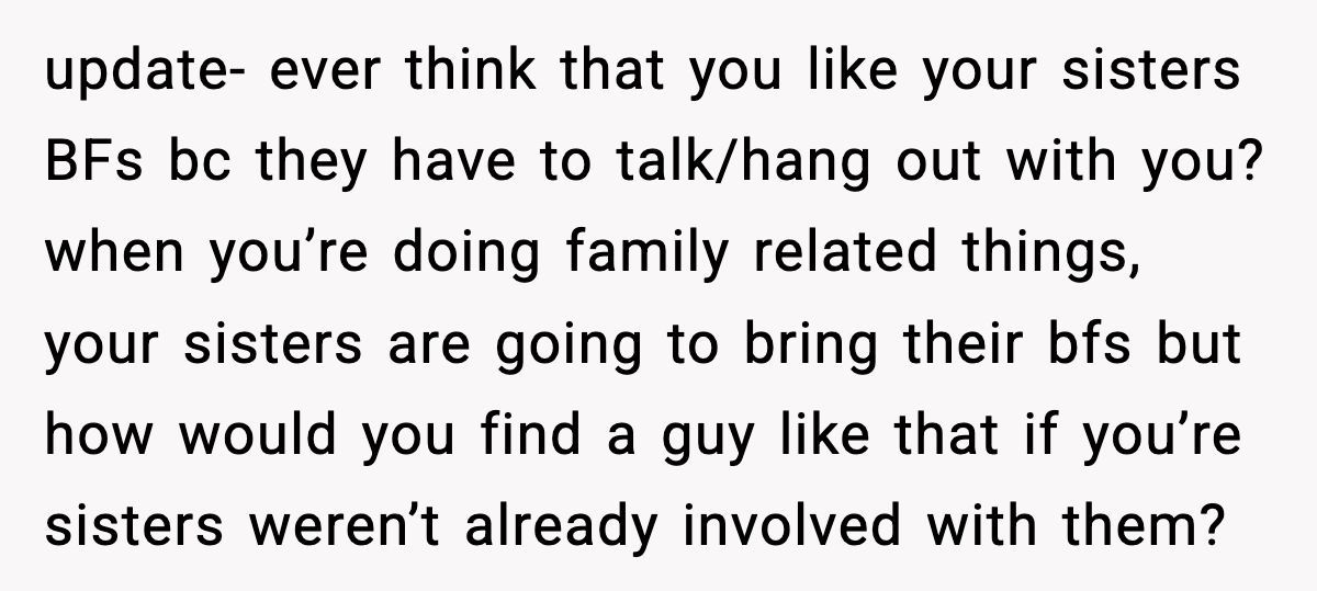 Another user went further, accusing OP of having a hidden crush and using the moment to undercut her sister.