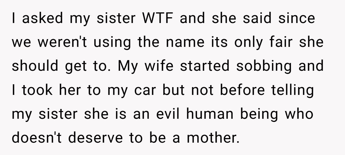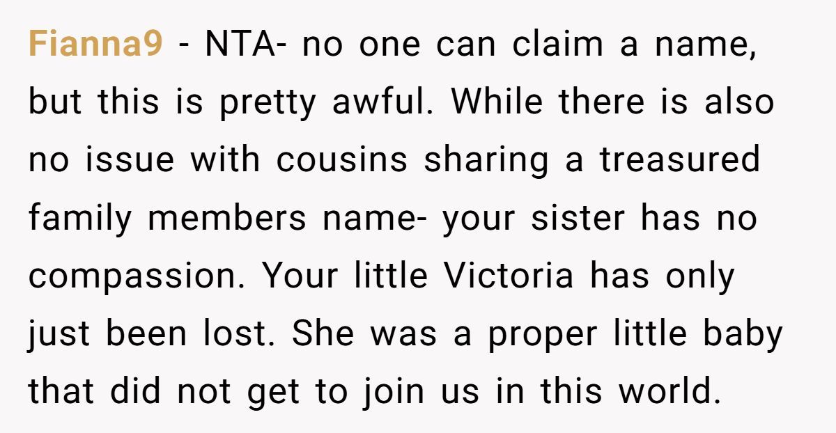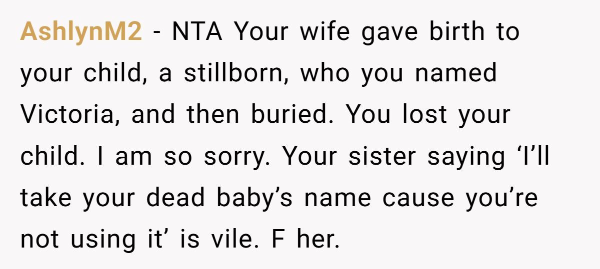 A Redditor recently opened up about a moment so heartbreaking, it cracked his family in two. After he and his wife tragically lost their stillborn daughter, they had asked for space, time, and respect. But at his sister’s gender reveal, they were blindsided: her baby’s name was the same one they had chosen—Victoria—a name they had already announced and grieved.
