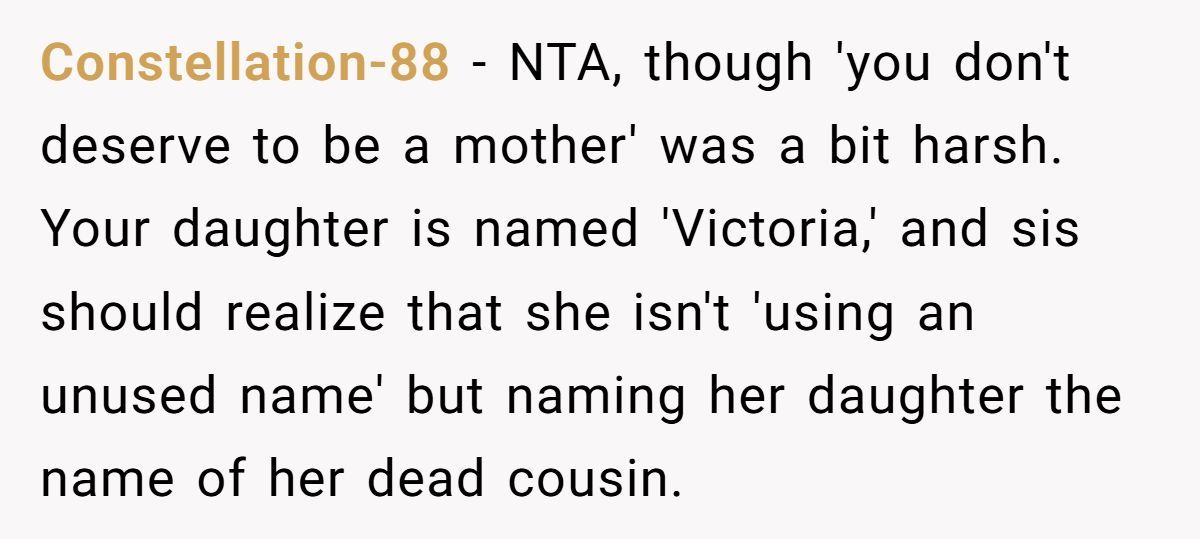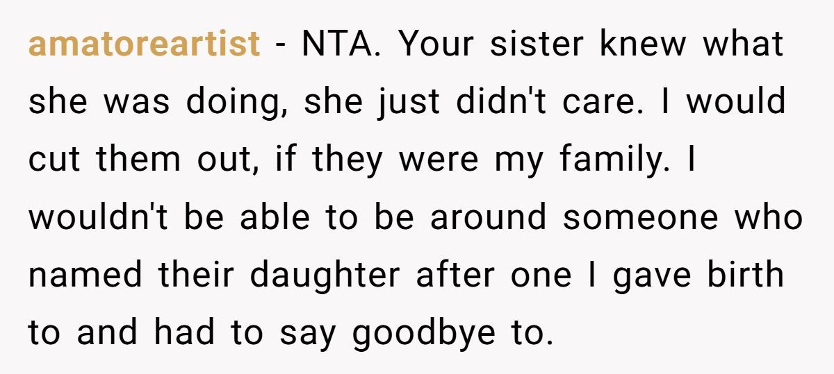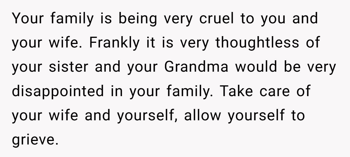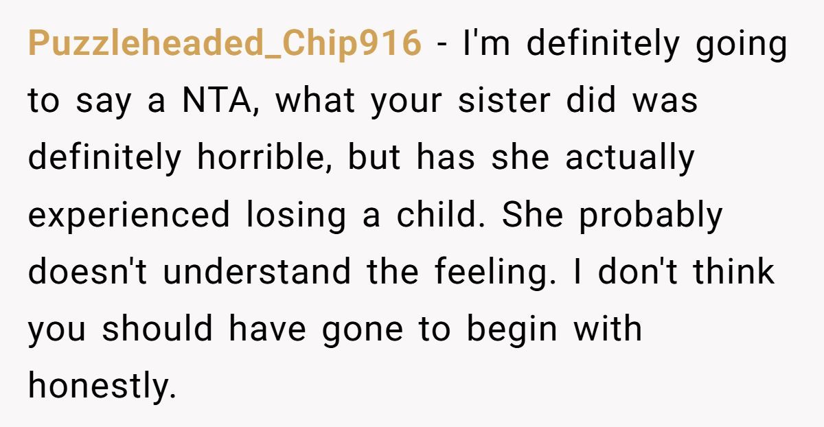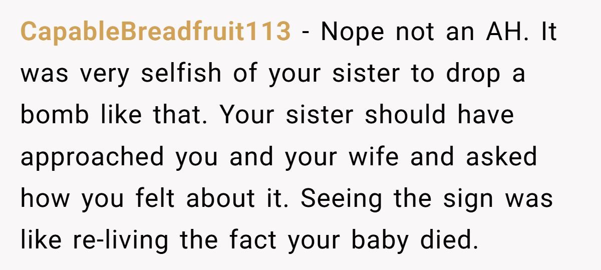 Commenters rallied behind OP, condemning his sister’s insensitivity
