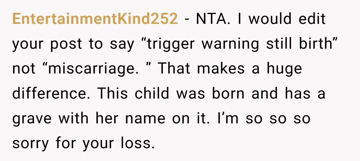 Some validated the couple’s grief, recognizing the stillborn daughter as a real loss