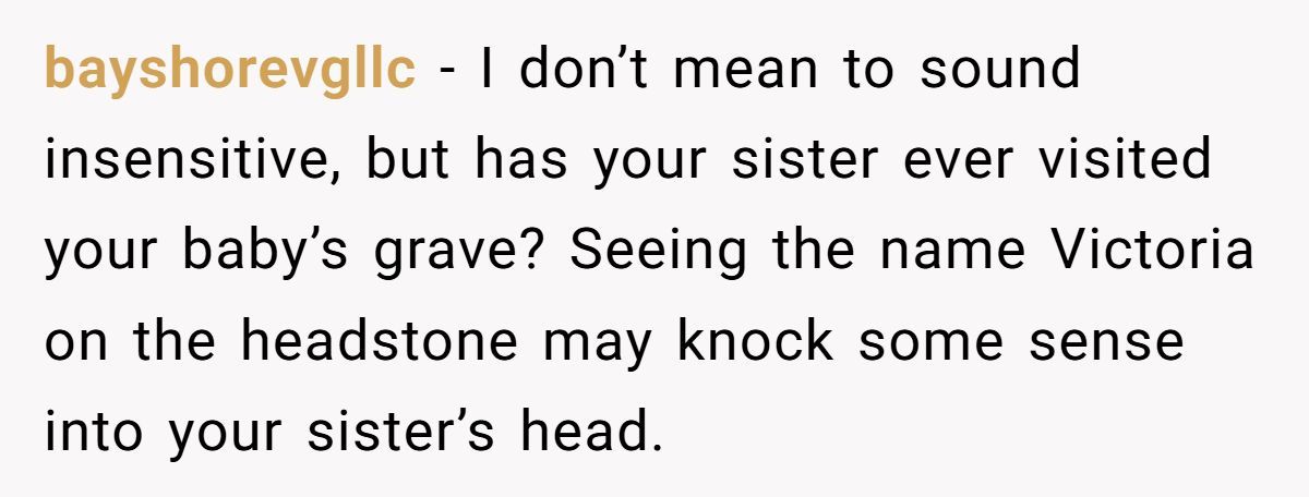 The sister didn’t just reveal her baby’s name. She tore open a wound that hadn’t closed. She reminded two grieving parents that their daughter—their Victoria—was gone and forgotten by the very people who should have remembered her.