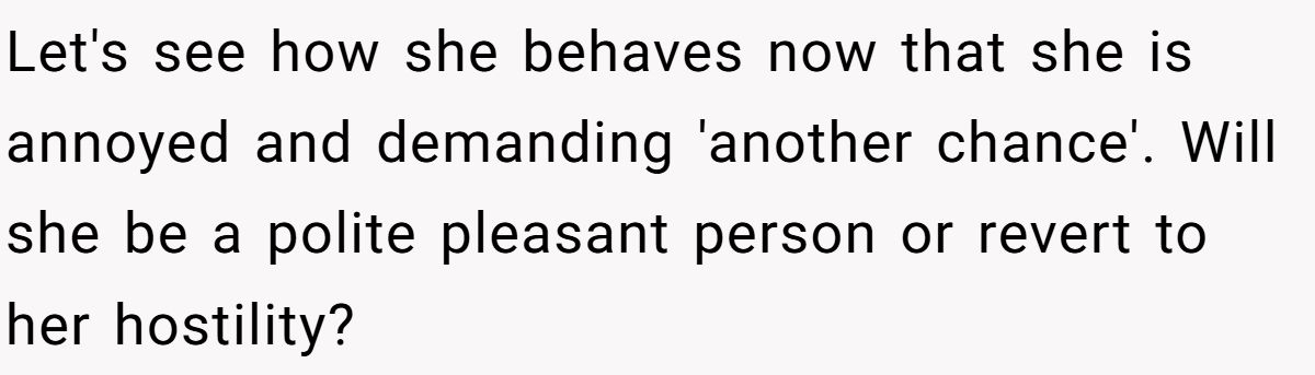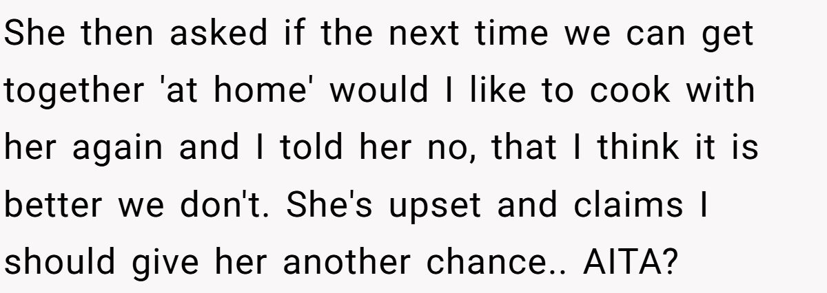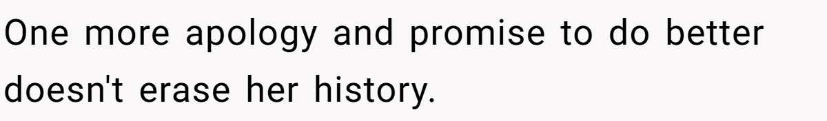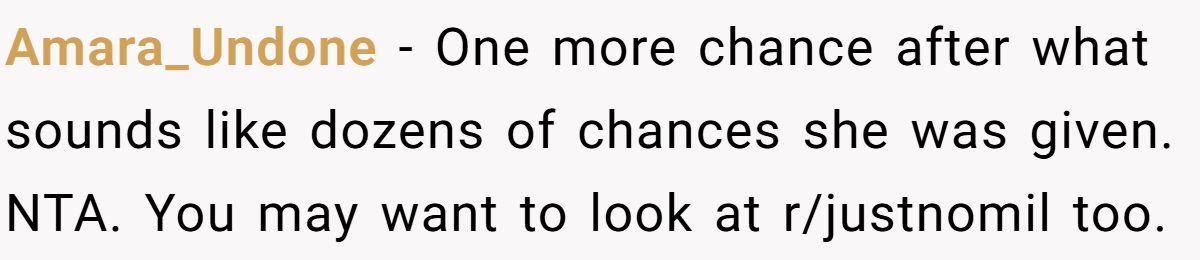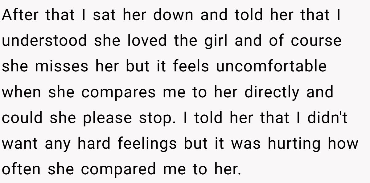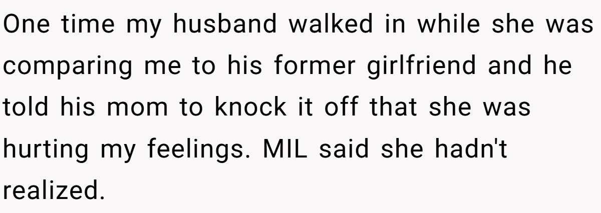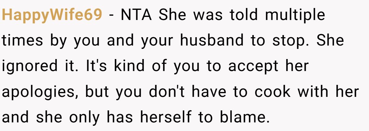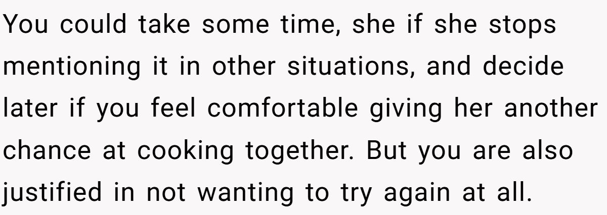 Family dynamics depend on mutual respect, and comparisons, intentional or not, chip away at it. The Redditor’s boundary is a self-protective move, not a punishment. A better path might be small steps, like joining family activities outside the kitchen, to rebuild trust over time. MIL needs to show consistent change, not just apologies.