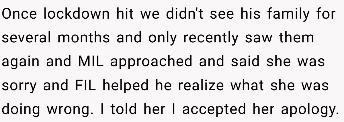 A 2021 study from the Journal of Family Issues found that 45 percent of in-law conflicts come from unspoken expectations or past loyalties (SAGE Journals). MIL might see the Redditor’s refusal to cook as a rejection of her olive branch, especially after months of lockdown separation. Still, her failure to respect boundaries does not earn her a free pass.