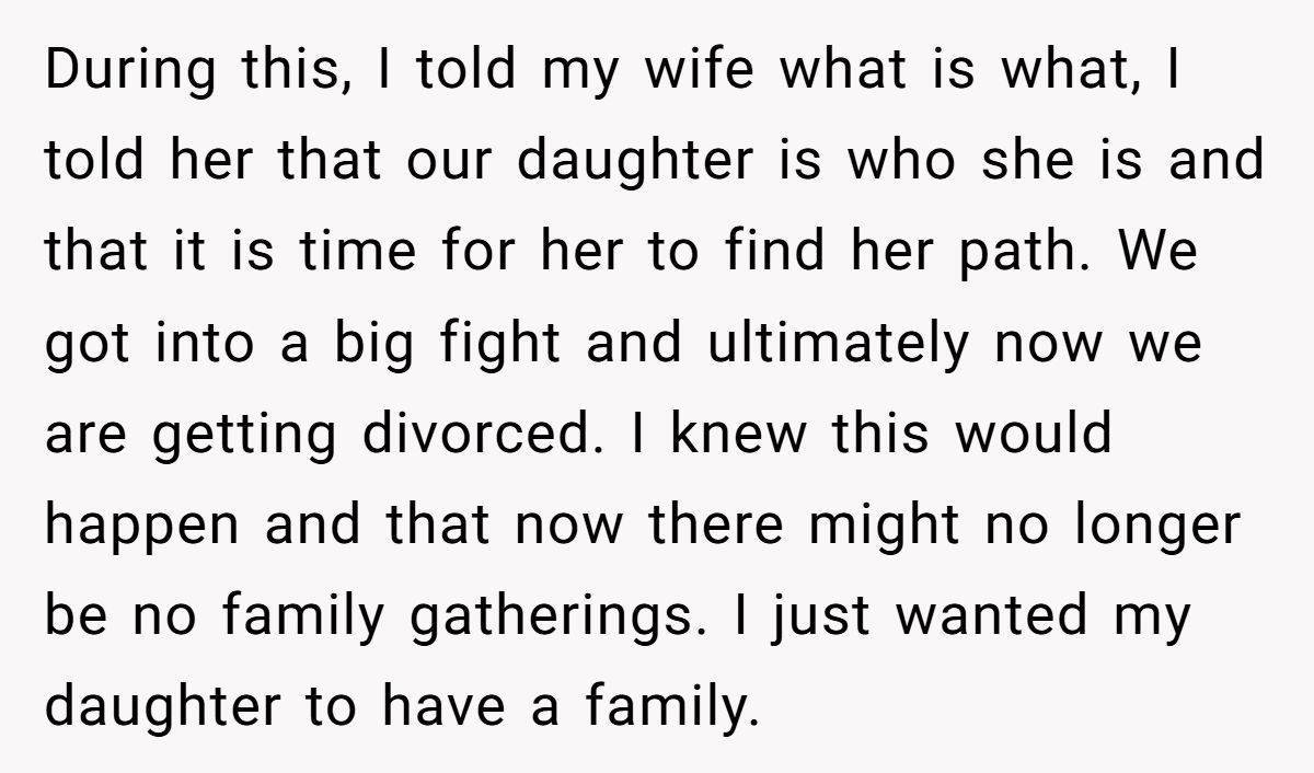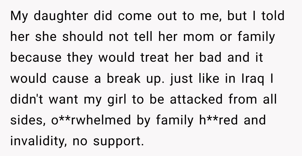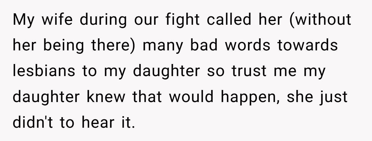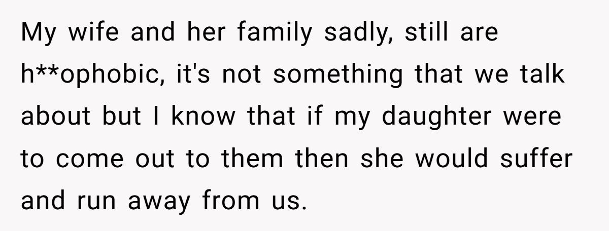 One man shared on Reddit how shielding his daughter’s identity from their homophobic family led to a devastating fight and impending divorce