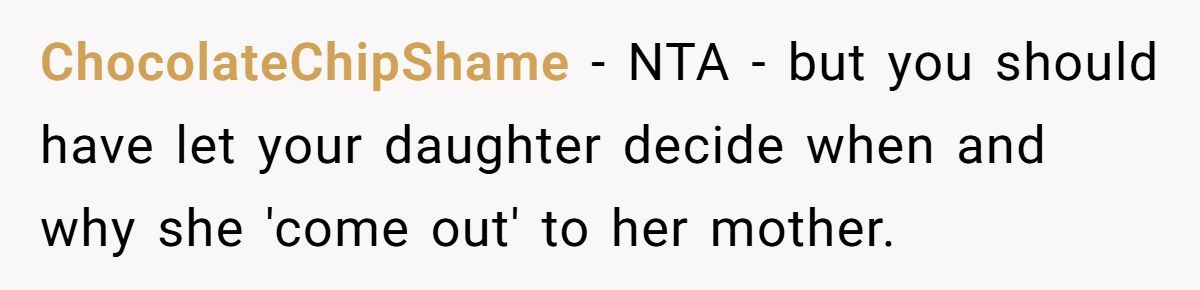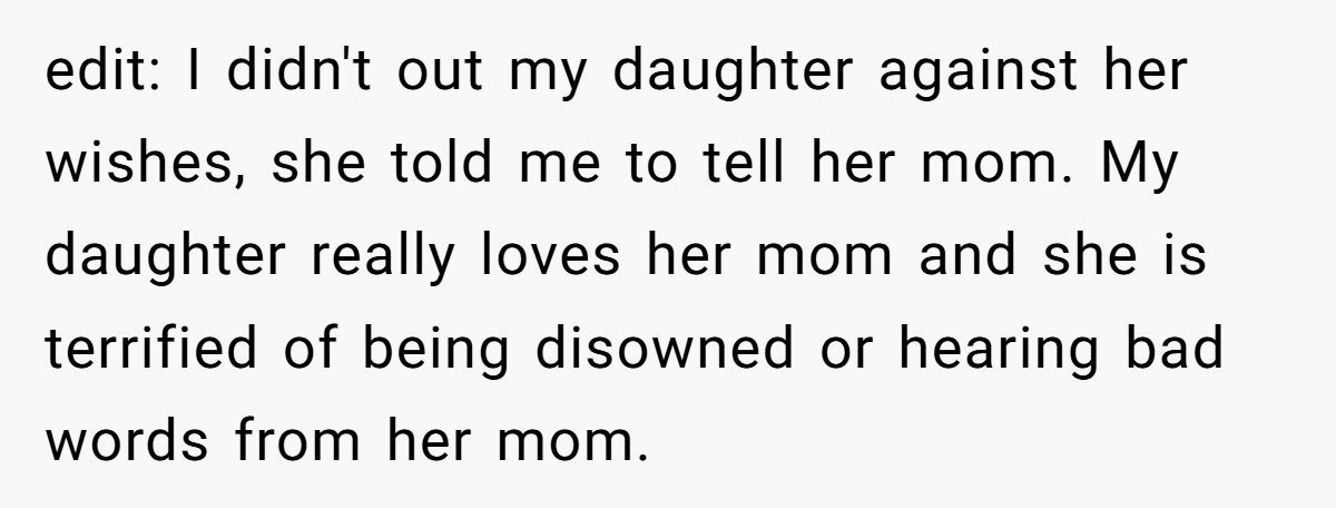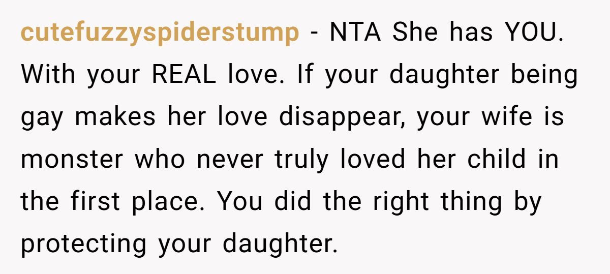 Users called the wife’s homophobic reaction monstrous, noting her refusal to accept her daughter shows shallow love