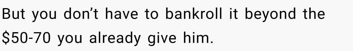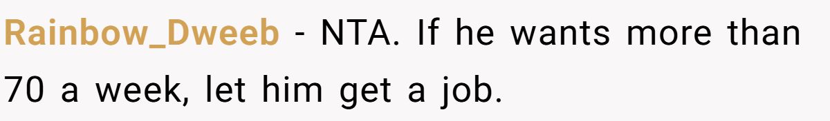 Other commenters agreed you’re NTA, saying your son should work if he wants extra cash and warning he might be getting used by his friend.