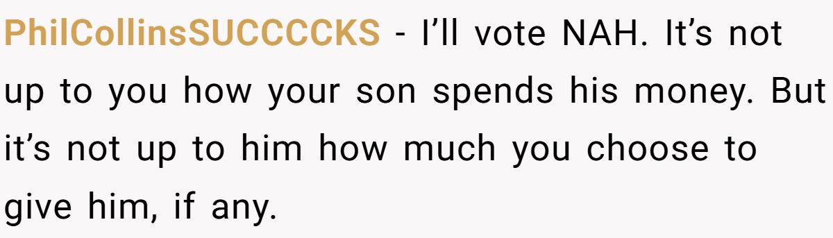 Now, as the silence stretches on and Reddit debates whether he’s a controlling parent or simply a practical one, Frugal Father is left to wonder: Was cutting the allowance the only way to draw a boundary, or did he shut down a chance to understand his son’s heart?