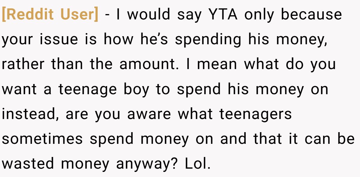 Reddit users mostly agreed with you and wondered if your son had other reasons for spending the money.