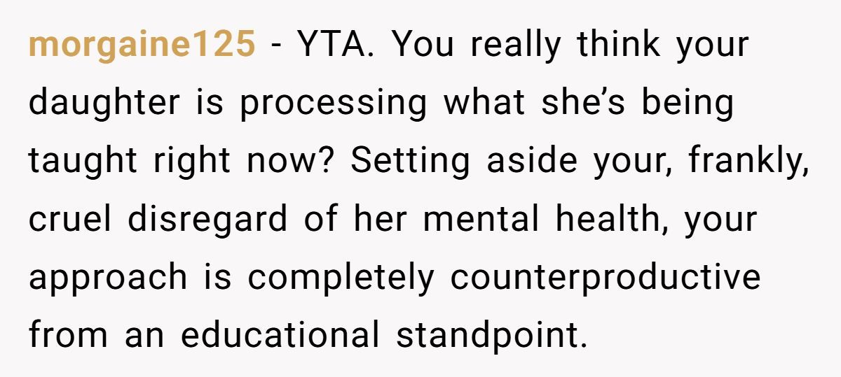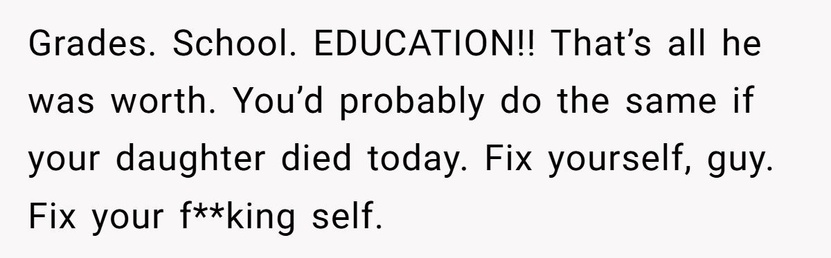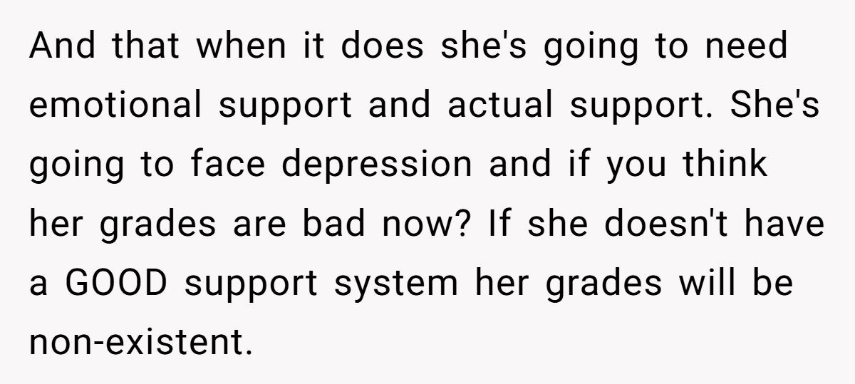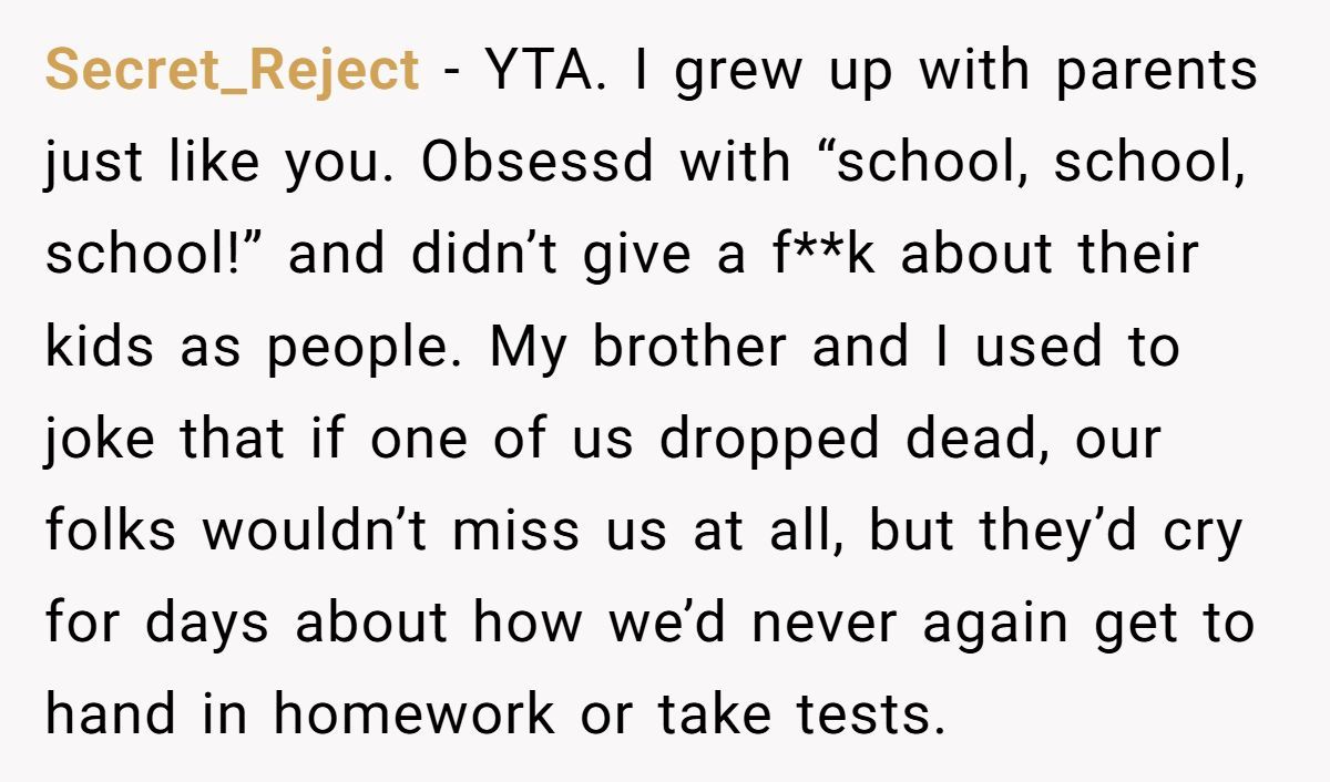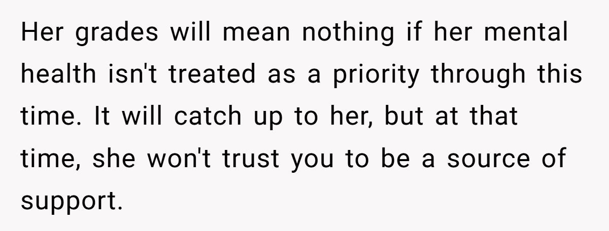 In the comments, many Redditors called the dad out for prioritizing grades over his daughter’s emotional health, urging counseling and time off to heal