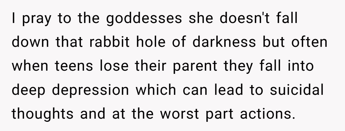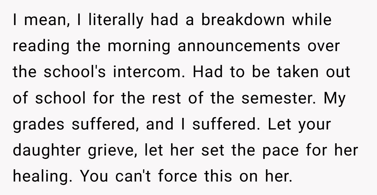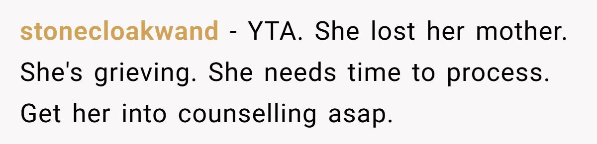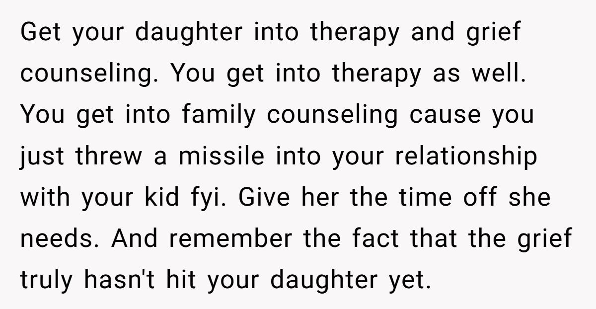 These Redditors warned that dismissing her grief could damage their bond and her mental health, risking depression or estrangement
