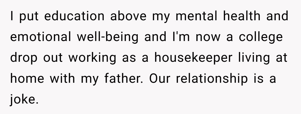 This father made his choice through the lens of fear—fear that life (and college) waits for no one. But the emotional cost? Massive. Emotional wounds don’t heal on term schedules.