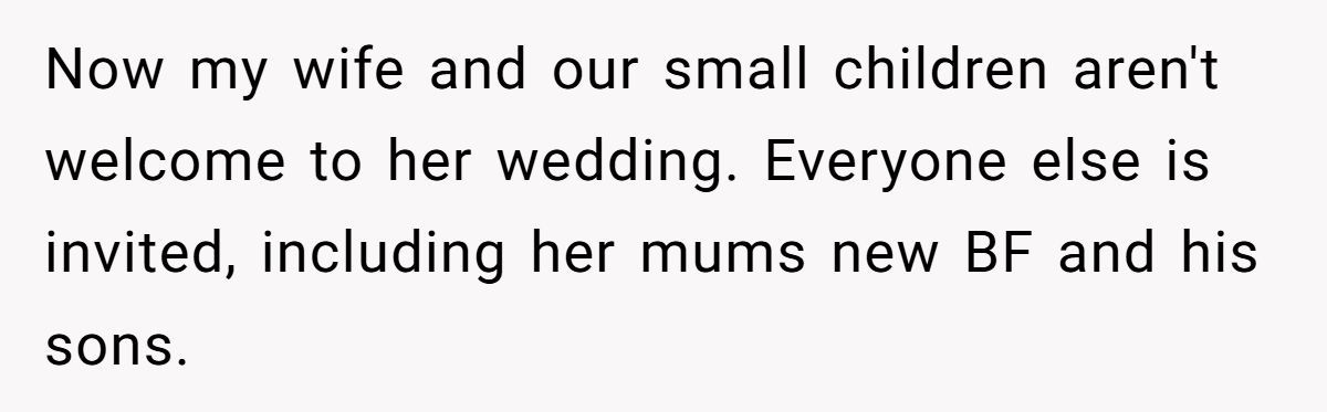 It wasn’t a simple “no kids” policy. It wasn’t a misunderstanding. His ex-wife’s new boyfriend and his children were invited. But the woman he built a life with after divorce—and the two sons they share—weren’t welcome. For this dad, that wasn’t just a snub. It was a clear message. So, he sent one back: If my family’s not invited, neither am I.