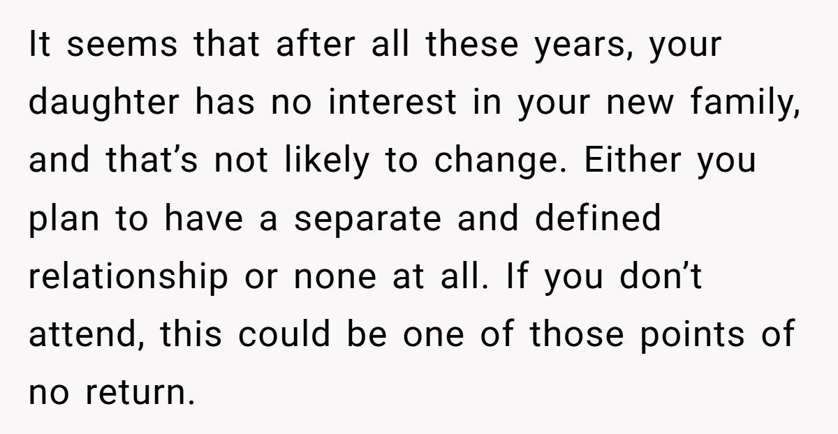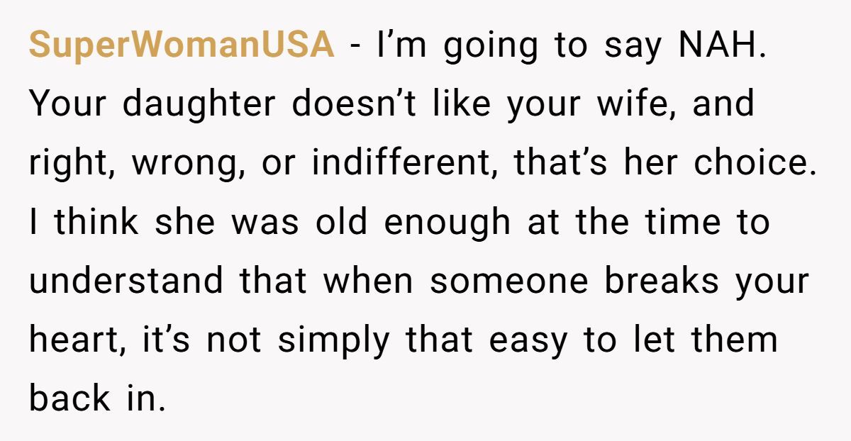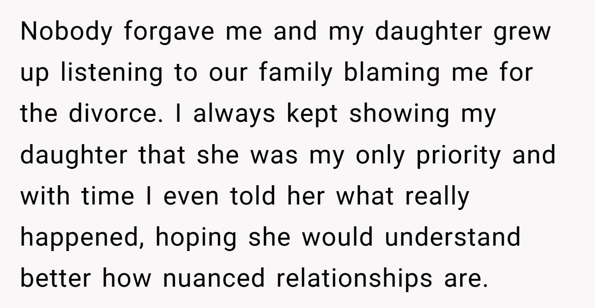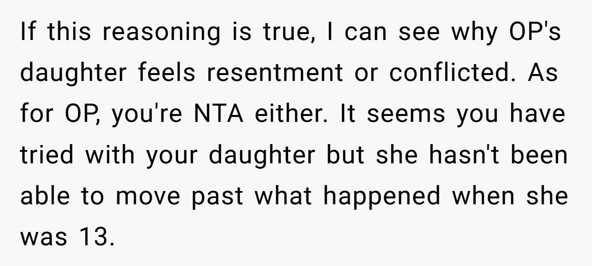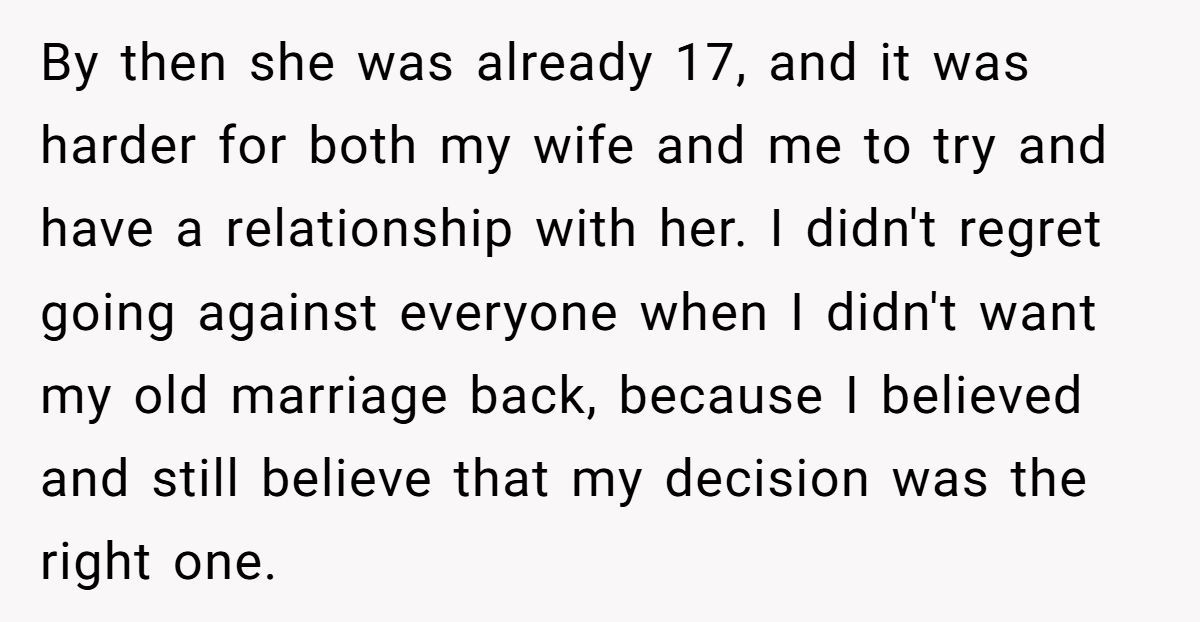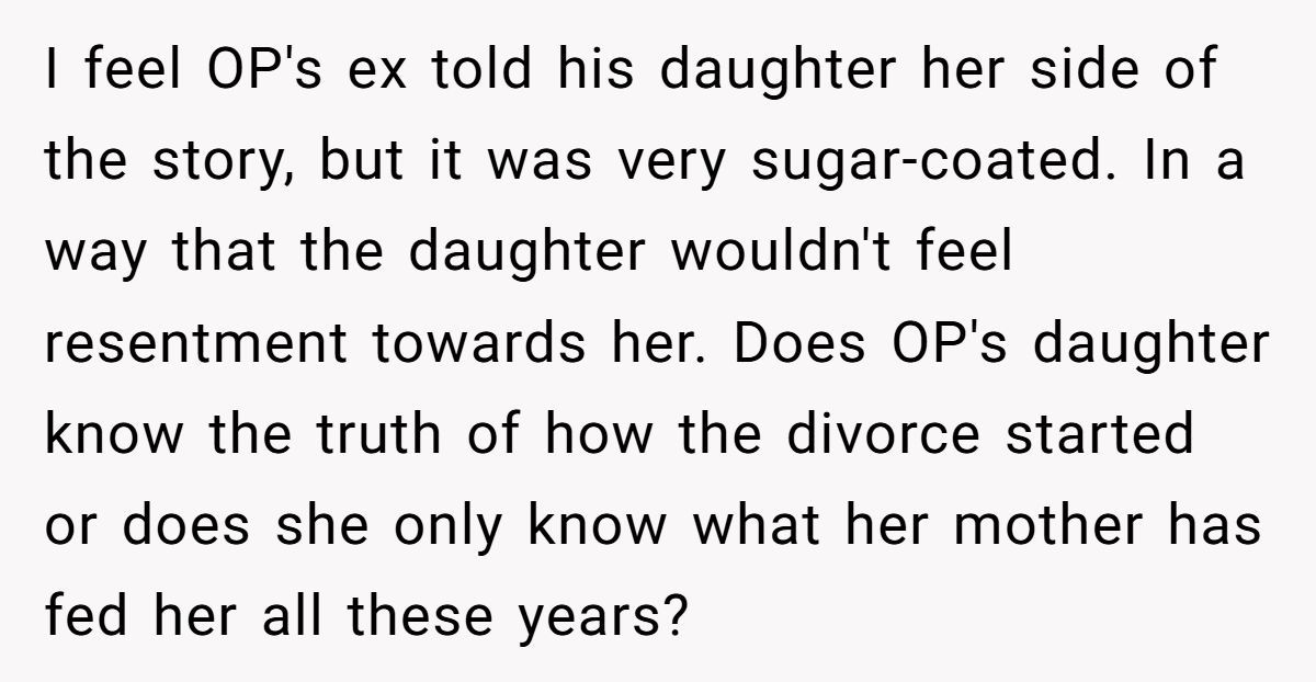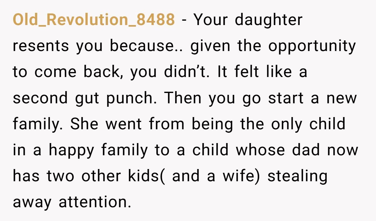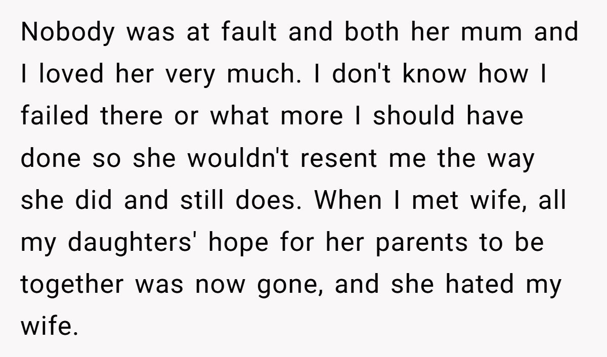 The dad explained that his daughter was 13 when he and her mother divorced. She was blindsided. And while he eventually told her the truth—that her mom initiated the split, and he chose not to reconcile—she spent years watching family members blame him anyway. By the time he remarried and had more kids, her heart was no longer open.