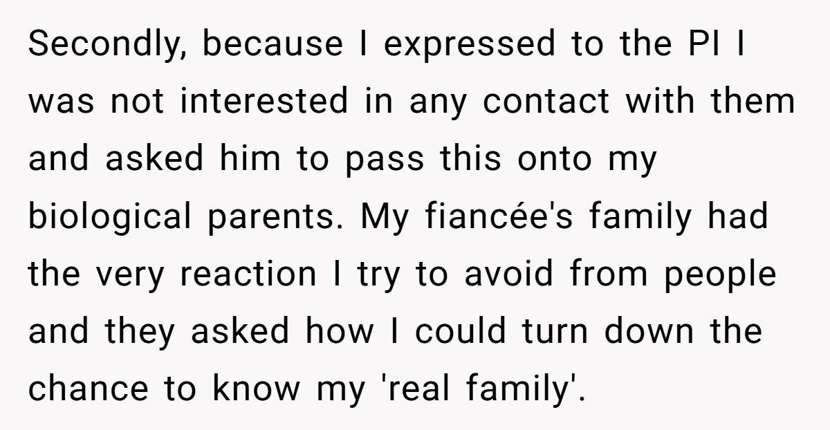 What the OP is dealing with is less about adoption and more about control. His fiancée’s family expected full access to personal details, and when they didn’t get them, they turned it into a betrayal. This dynamic often occurs when families view a new member as an extension of themselves rather than an individual with agency.
