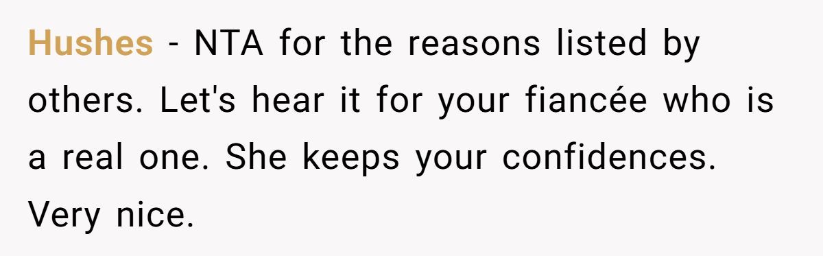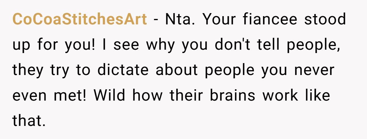 Here’s where it gets hopeful: His fiancée had his back. She defended him, kicked out her parents when they overstepped, and reinforced that his story was his own. That’s relationship gold right there.