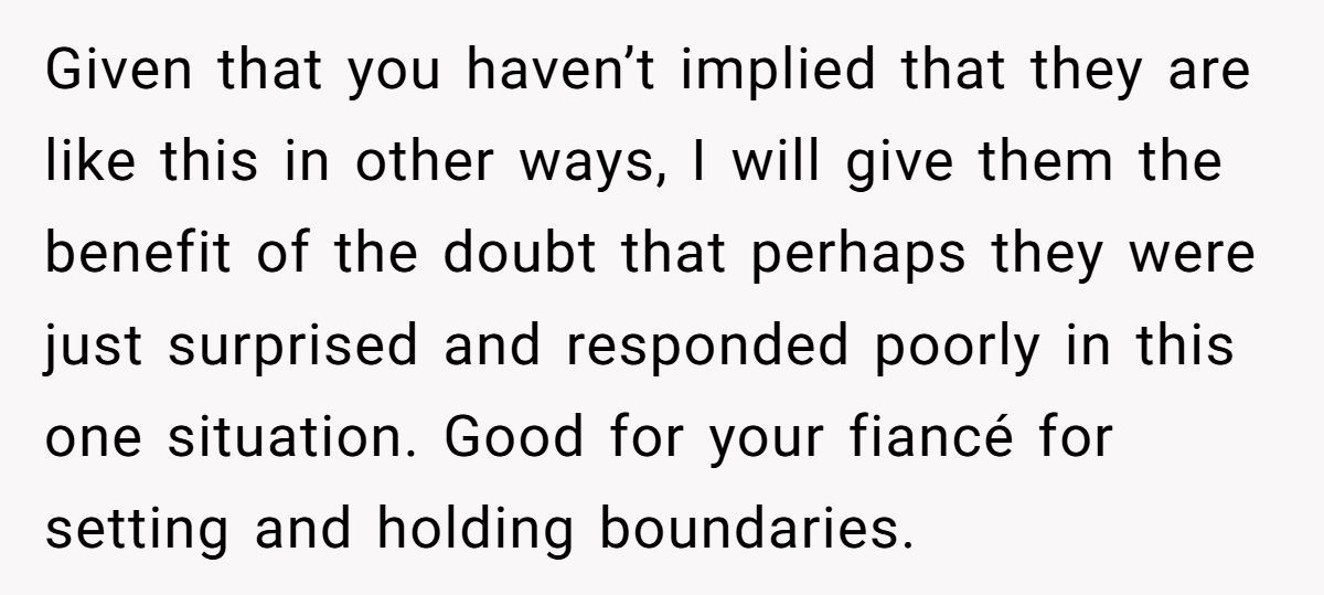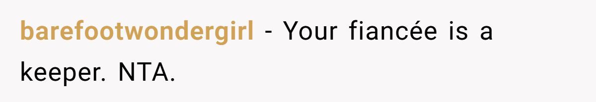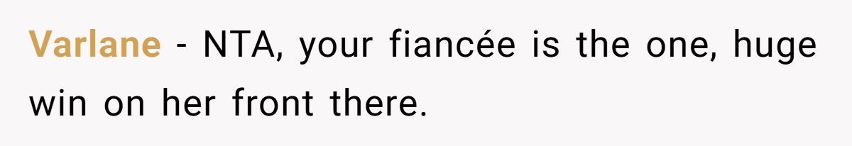 These users claimed the fiancée’s defense was admirable, advising the Redditor to value her