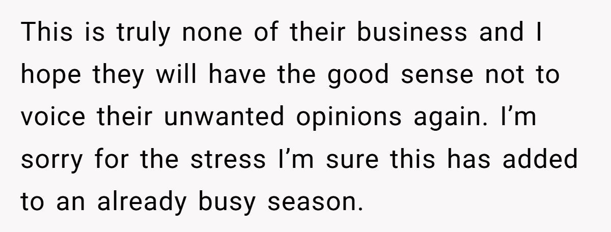 These commenters claimed the Redditor’s adoption is his private business, advising him to maintain his stance