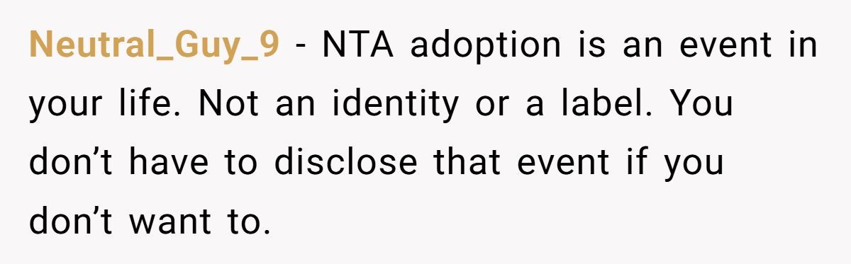 One Redditor phrased it best: “Adoption is an event in your life. Not a label.”