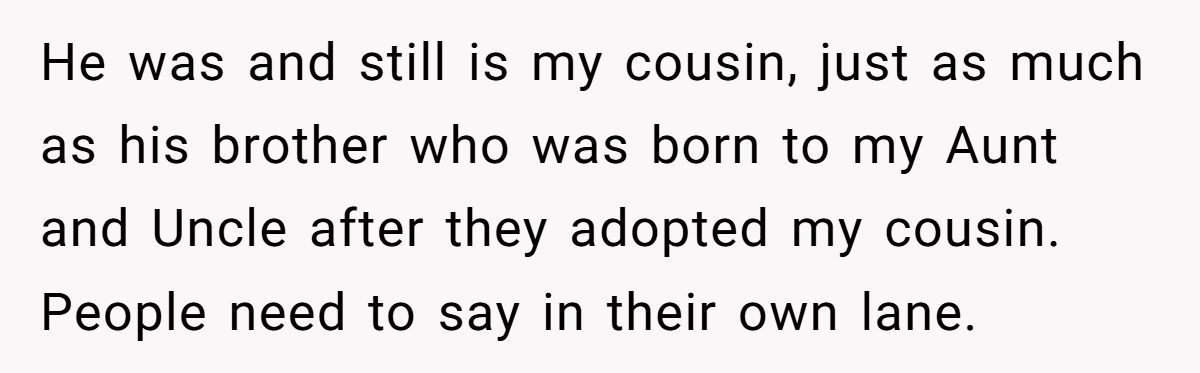 This story isn’t just about adoption—it’s about ownership of personal history and how people feel entitled to stories that aren’t theirs. The OP didn’t lie. He just chose not to hand out his life story like party favors. And his fiancée’s family? They’ll need to learn that being family isn’t a license to interrogate someone’s past.