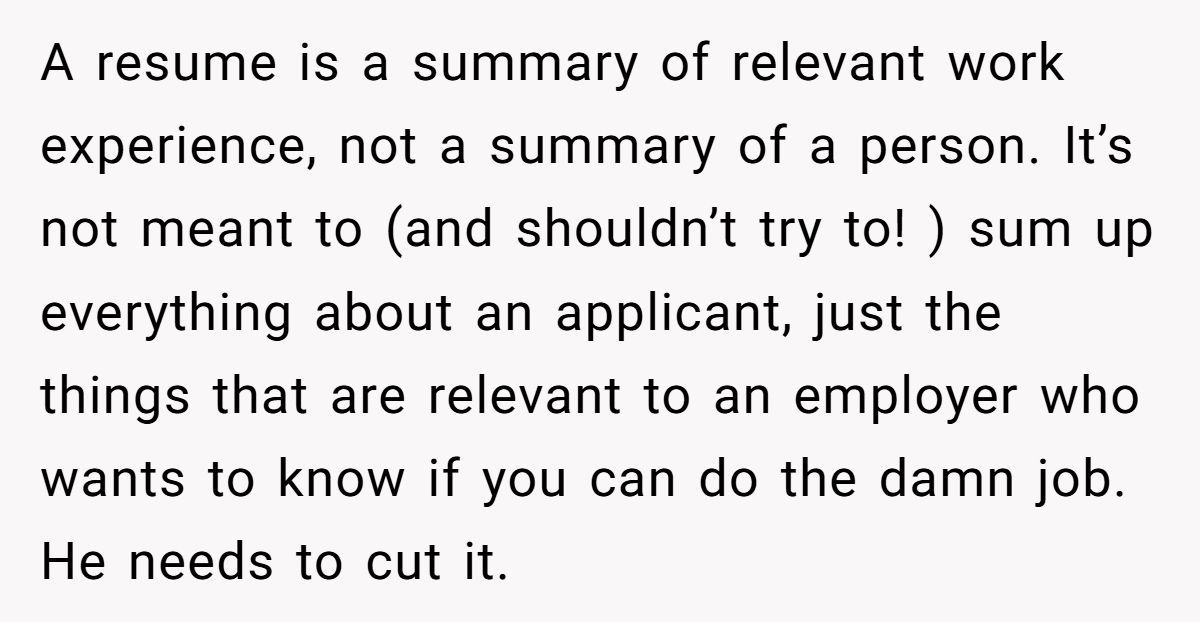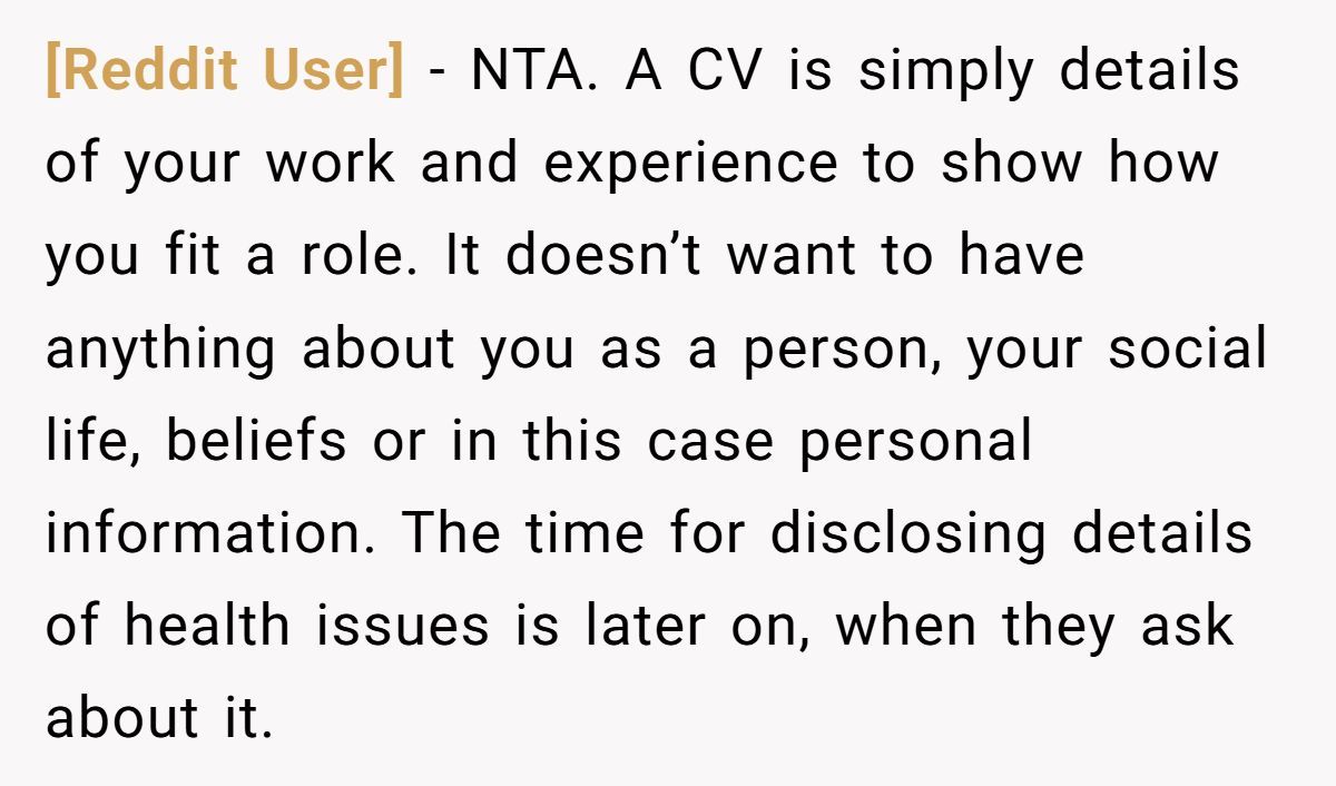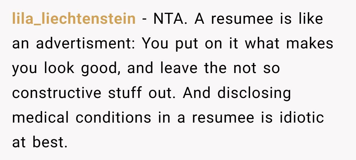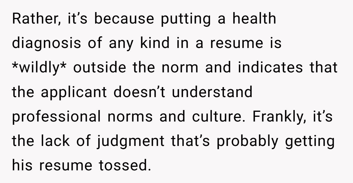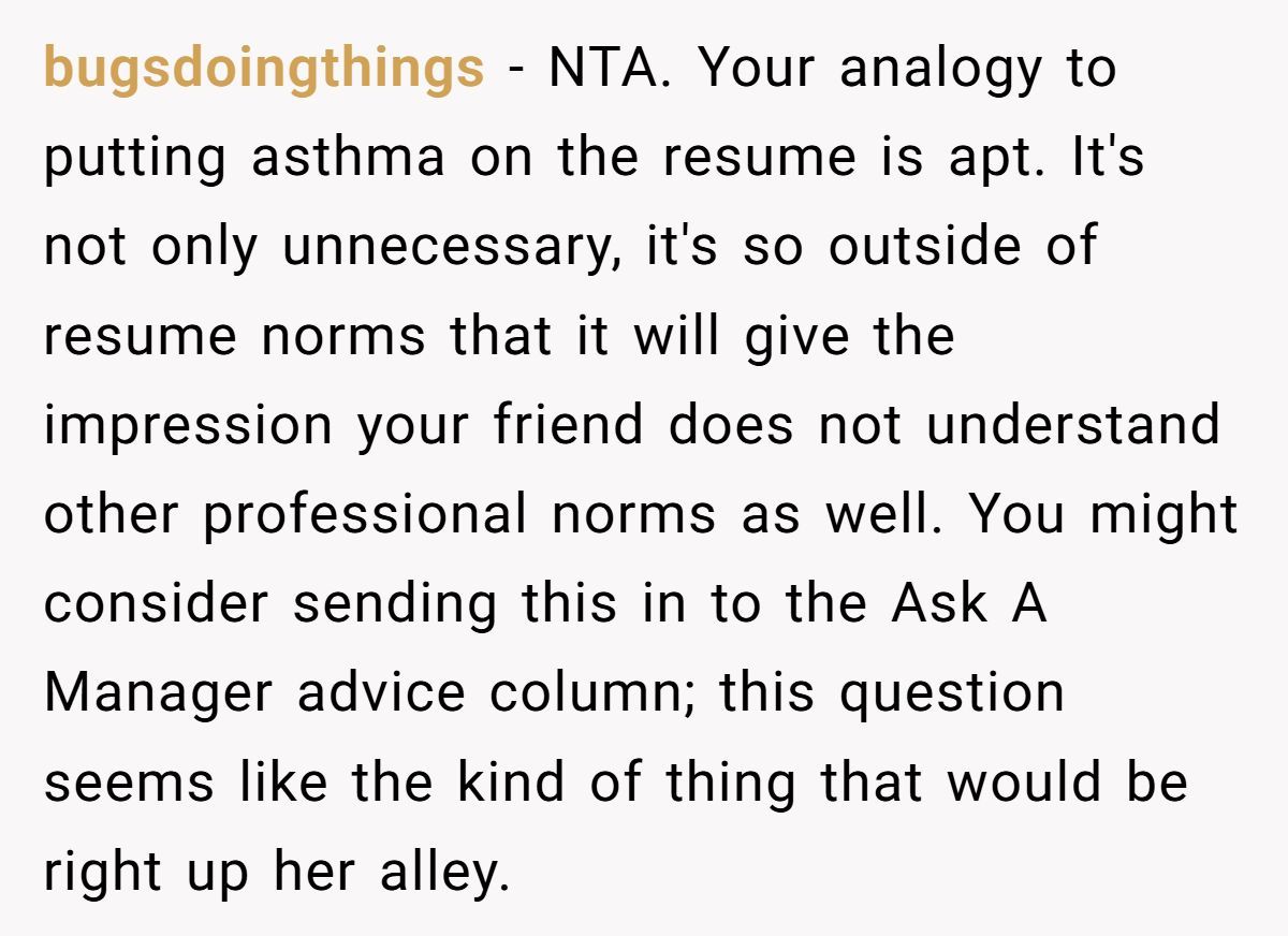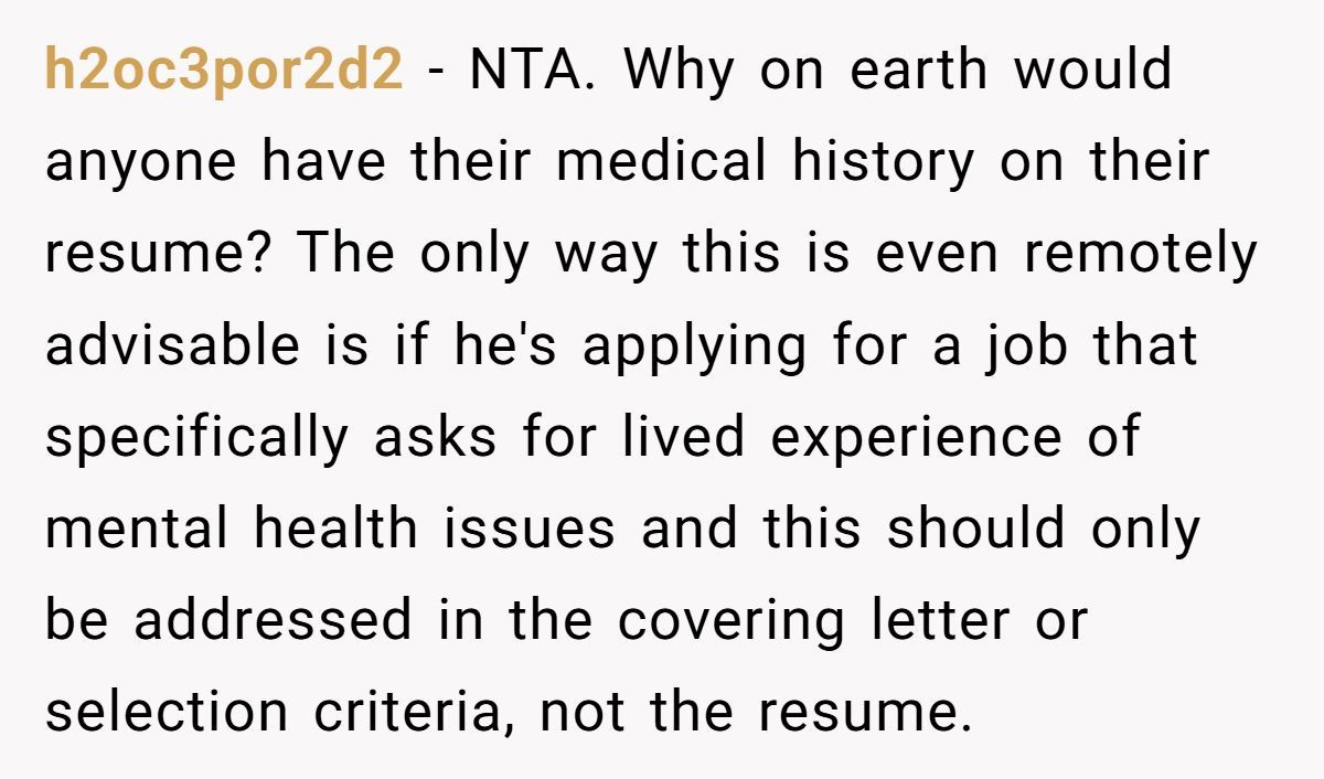 This Redditor may have stepped on a few toes, but his advice likely helped his friend more than it hurt. In a world still struggling with mental health stigma, there’s wisdom in picking your moment—and your platform. Should resumes be spaces for radical honesty, or simply a way to get a foot in the door? Where’s the line between authenticity and strategy? Share your take in the comments.