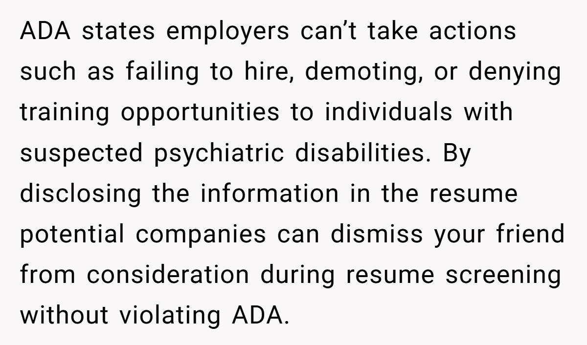 Let’s be blunt: resumes are marketing tools, not autobiographies. They’re meant to highlight relevant skills, experience, and qualifications. Personal health—mental or physical—isn’t typically part of that package. So when this Redditor told his friend to remove his bipolar diagnosis from his resume, he wasn’t wrong by professional standards.
