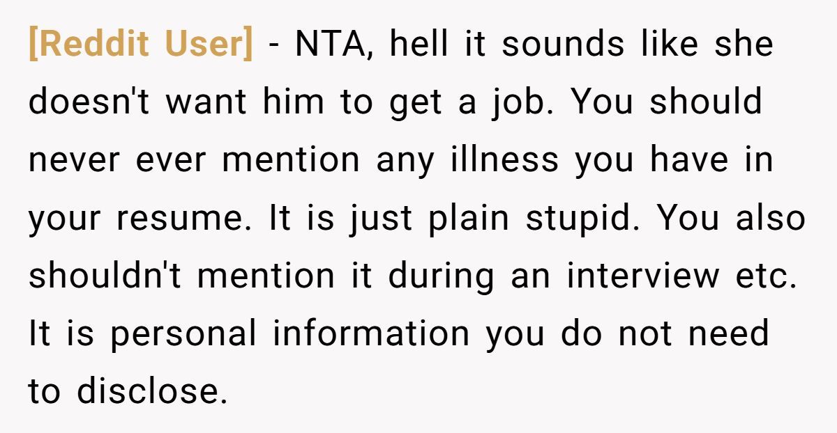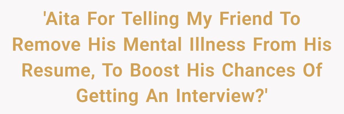 Friend Struggling To Find Work—Man Suggests Removing Mental Illness From Resume And Sparks Outrage