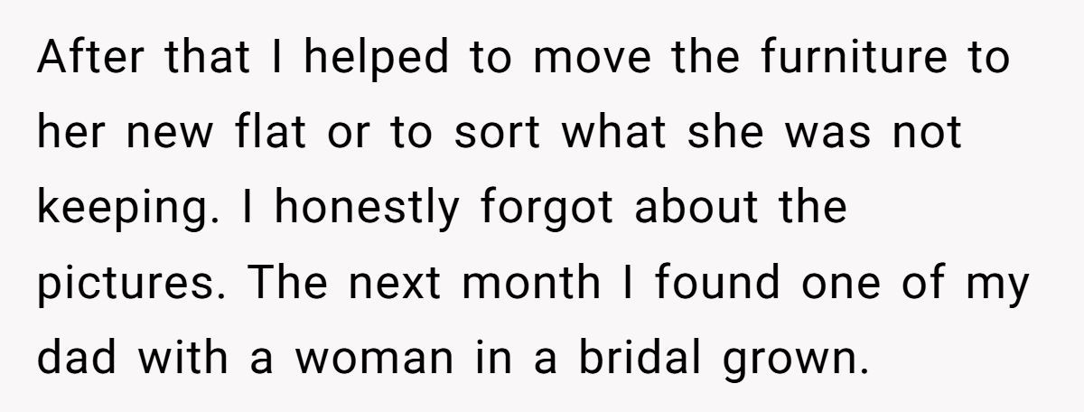 The Redditor, now an adult, shared how they found old photos while clearing out their grandfather’s attic. Among the belongings were images of a little girl they didn’t recognize and a wedding photo that clearly showed their dad, standing beside someone who wasn’t their mother.