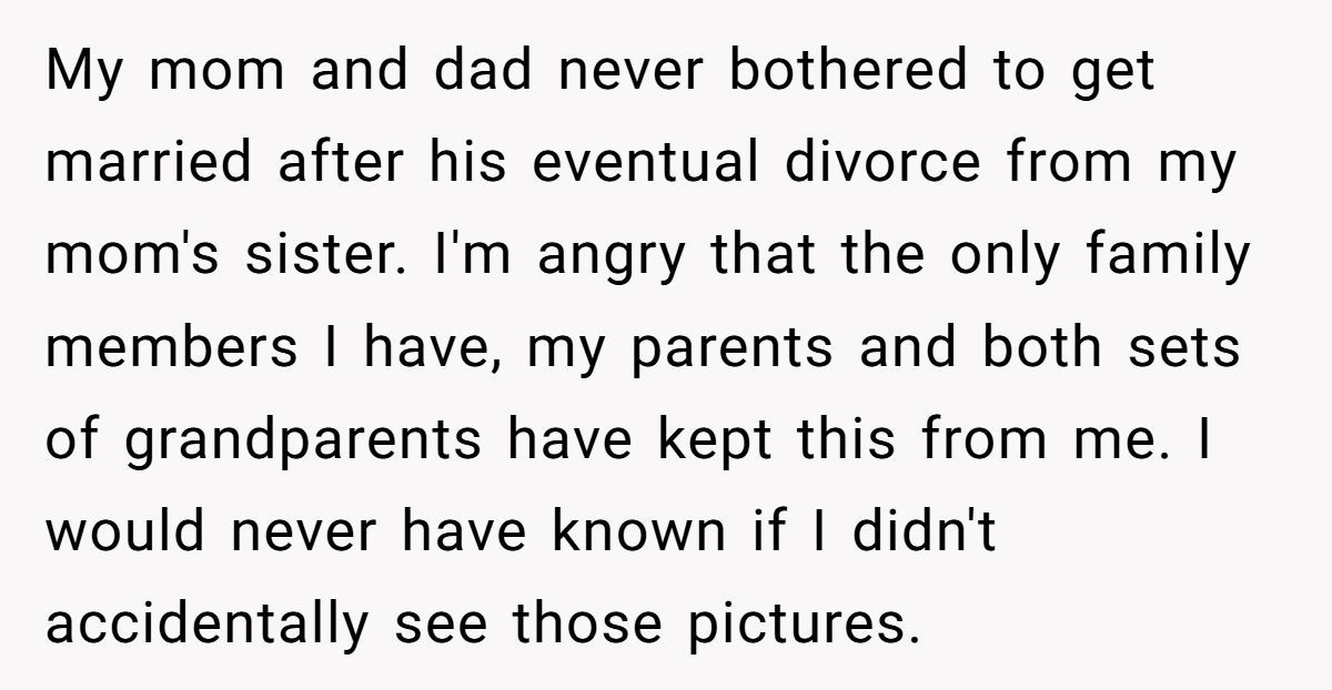 This Redditor’s story is a powerful reminder that secrets, no matter how old, have a way of surfacing—and when they do, the emotional impact can be explosive.
