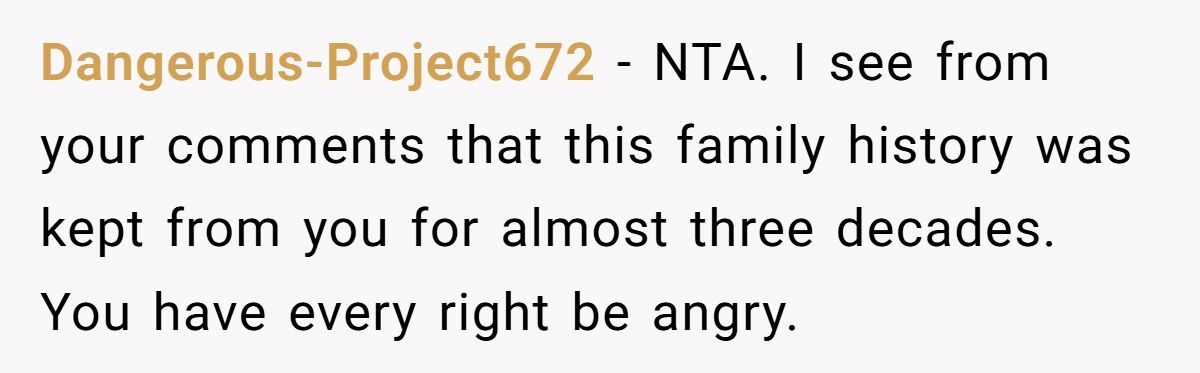 Some redditors sympathized with OP, emphasizing how secrecy, shame, and generational silence likely shaped the family’s decision to bury the truth for so long.