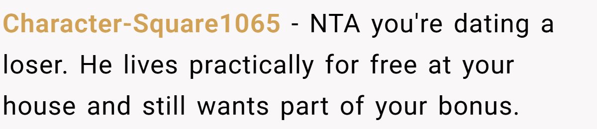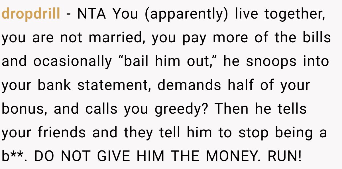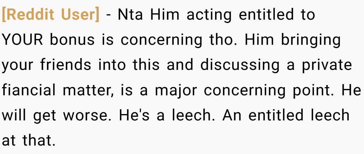 ![He Lives Rent-Free and Still Wants Her Bonus - Reddit Is Not Having It [Reddit User] − Nta Him acting entitled to YOUR bonus is concerning tho. Him bringing your friends into this and discussing a private fiancial matter, is a major concerning point. He will get worse. He's a leech. An entitled leech at that.](https://dailyhighlight.com/wp-content/uploads/2025/07/11234-26.jpg)