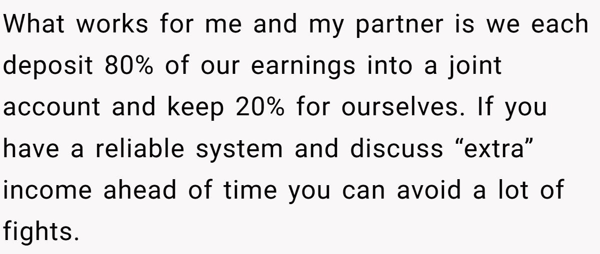 What’s the fix? Bonus Boss could initiate a calm talk about their financial roles, reinforcing that her bonus is her personal reward, not joint income.