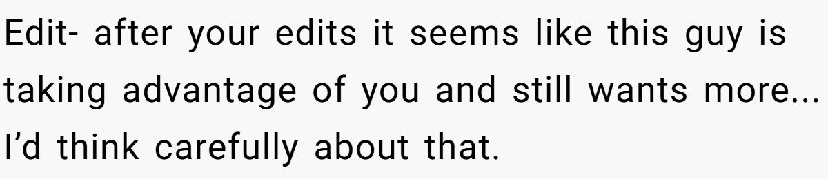 Redditors warned that his behavior shows red flags, and it might only get worse.