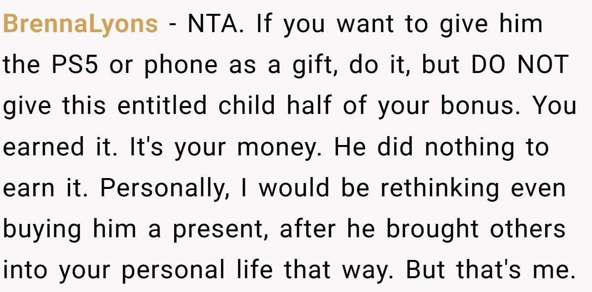 Bonus Boss’s money saga is a wild ride. Imagine earning a big bonus only for your partner to demand half while peeking at your bank account. Was she right to guard her hard-earned cash, or should she have shared to smooth things over?