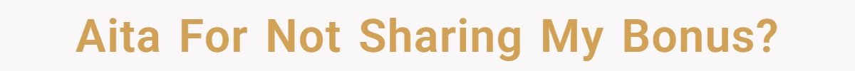 Readers, should Bonus Boss share her bonus to keep the peace, or is she right to stand her ground?