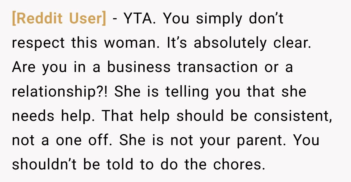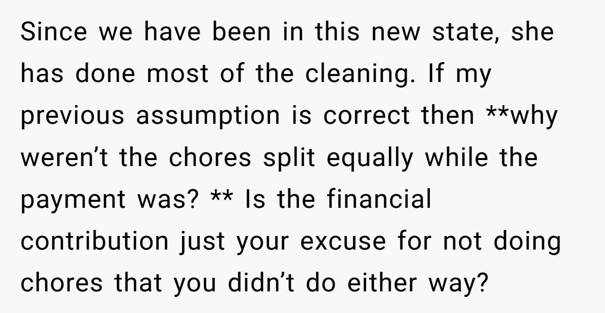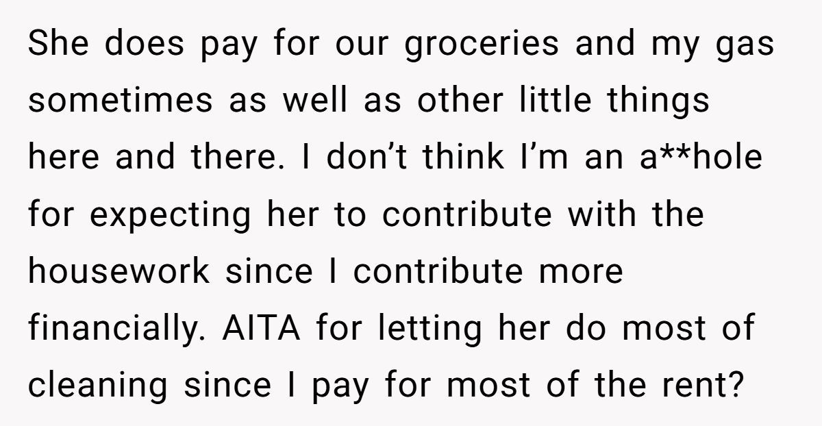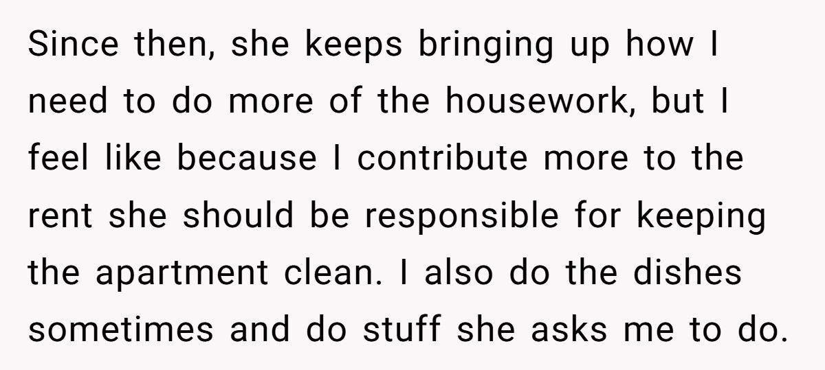 To his credit, the Redditor later updated the post saying he realized he was wrong. He’s agreed to help more with chores and cover more of the rent. That’s a step in the right direction but after eight months of imbalance, trust needs rebuilding, not just promises.