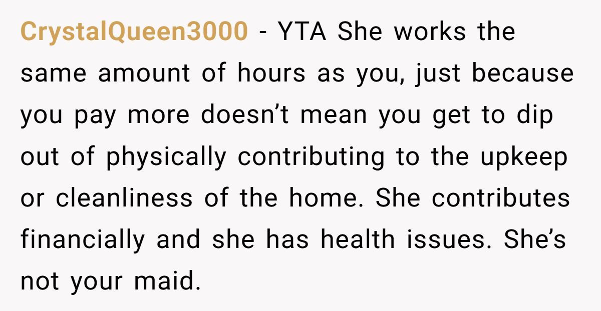 First off, his girlfriend’s frustration is more than fair. According to a 2023 Journal of Family Studies report, 62% of couples say uneven chore division causes serious tension. Even if one partner earns more, the workload at home needs to feel equitable. Her job may be “less demanding,” but add in chronic health flare-ups, and she’s running on fumes while he’s resting on rent payments.