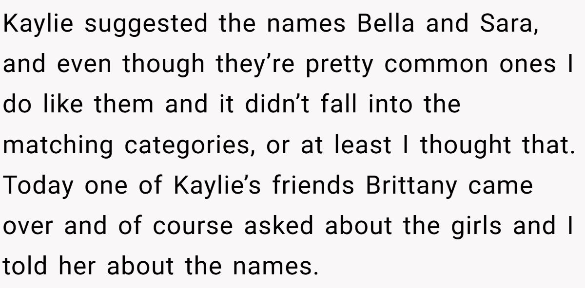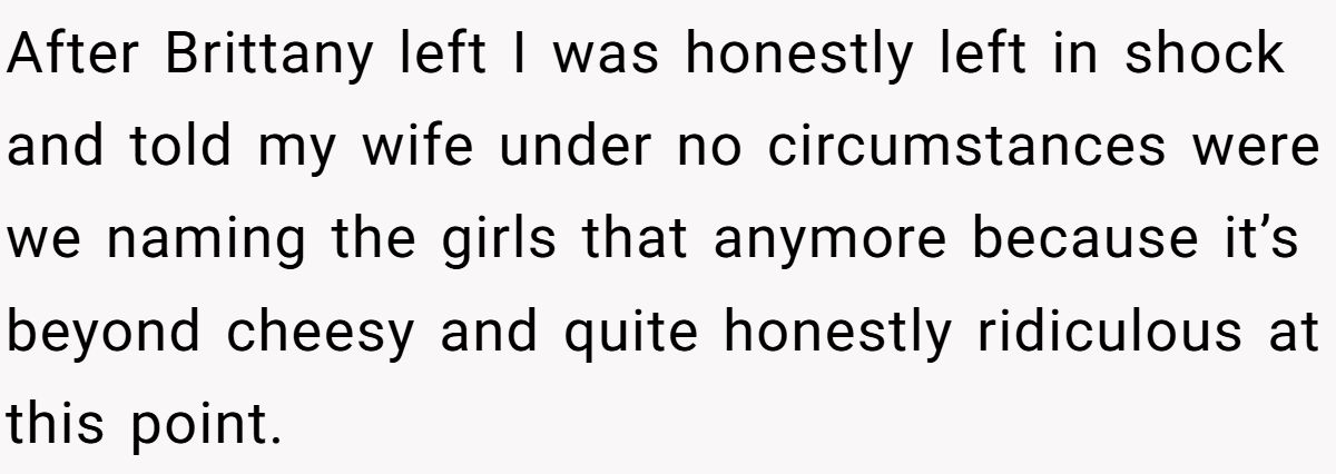 For the husband, it was a dealbreaker. He couldn’t believe she’d name their daughters after something so cheesy. Kaylie brushed it off, insisting no one would know. But he put his foot down and Reddit lit up. Should the names stay or go? Let’s unpack the drama.