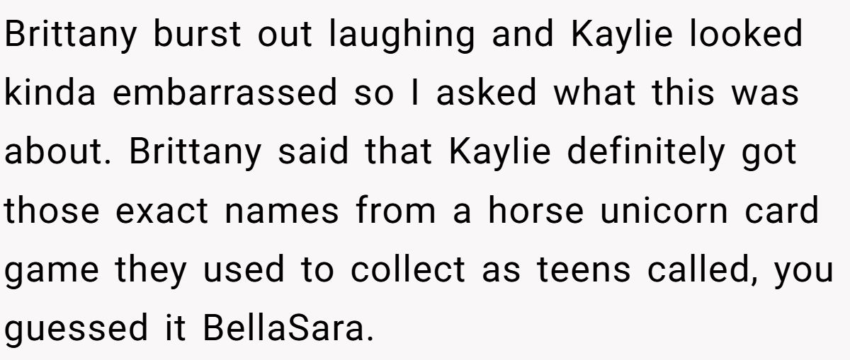 During a visit, Kaylie’s friend Brittany burst into laughter after hearing the name picks. Why? Turns out Bella and Sara weren’t just cute, those were the star characters of a fantasy card game the two girls played in their teens called BellaSara, packed with sparkly unicorns and magical horses.