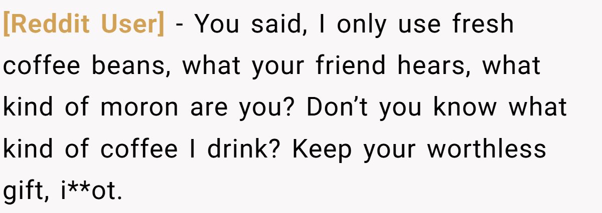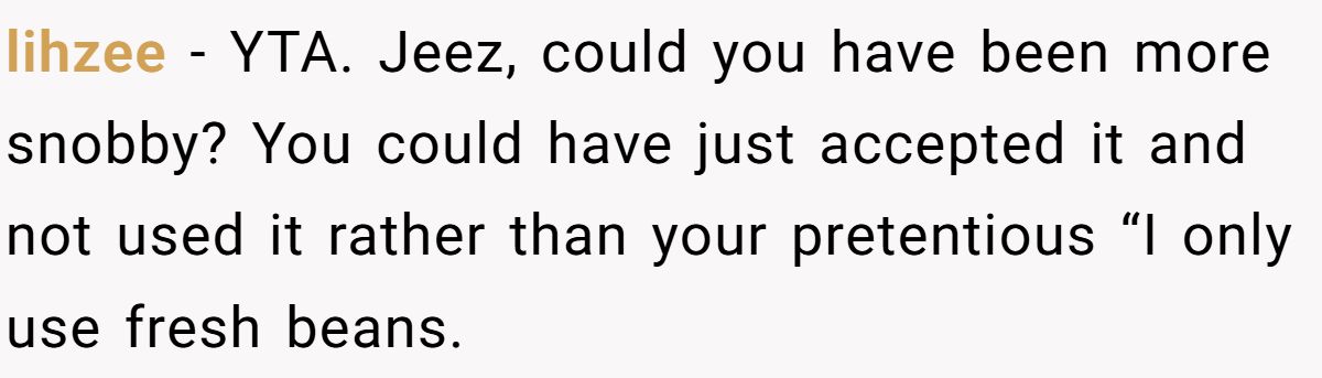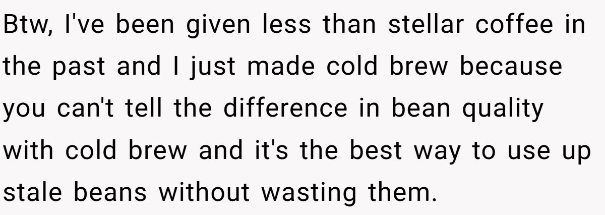 This Redditor wasn’t trying to be rude—he just didn’t want to fake appreciation for coffee he’d never drink. But in doing so, he may have brewed more drama than he expected. Whether it’s about etiquette, ego, or espresso, one thing’s clear: sometimes, biting your tongue is sweeter than speaking your taste.