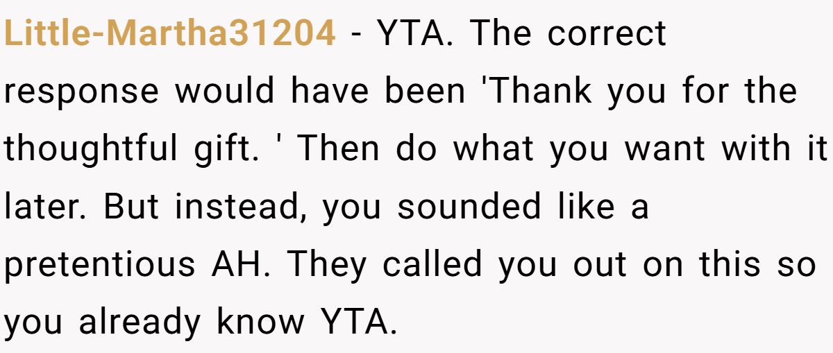 Was he justified in being honest—or should he have played along to protect the friendship? Would you turn down a gift you didn’t like, or just smile and say “thank you”? Spill your thoughts in the comments below.