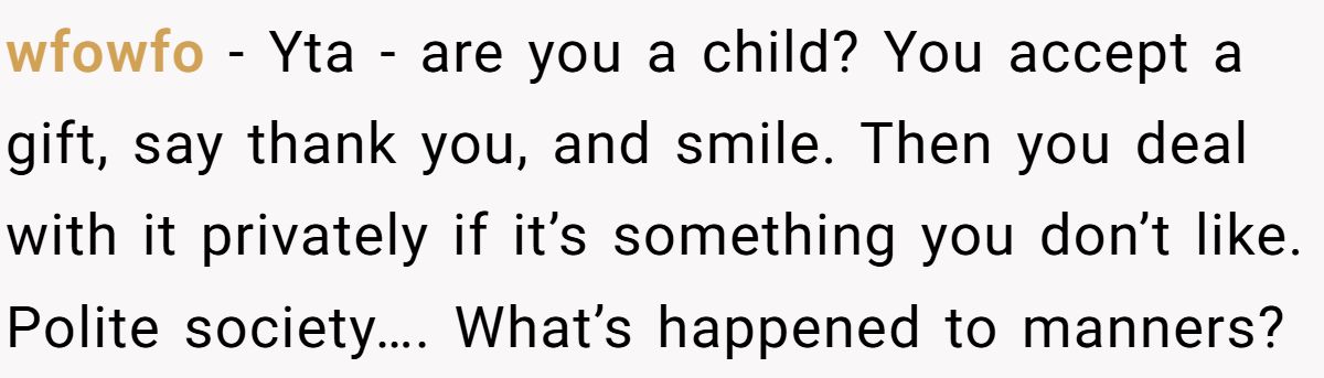 Users called him out for being rude, saying he should’ve accepted the gift and dealt with it privately