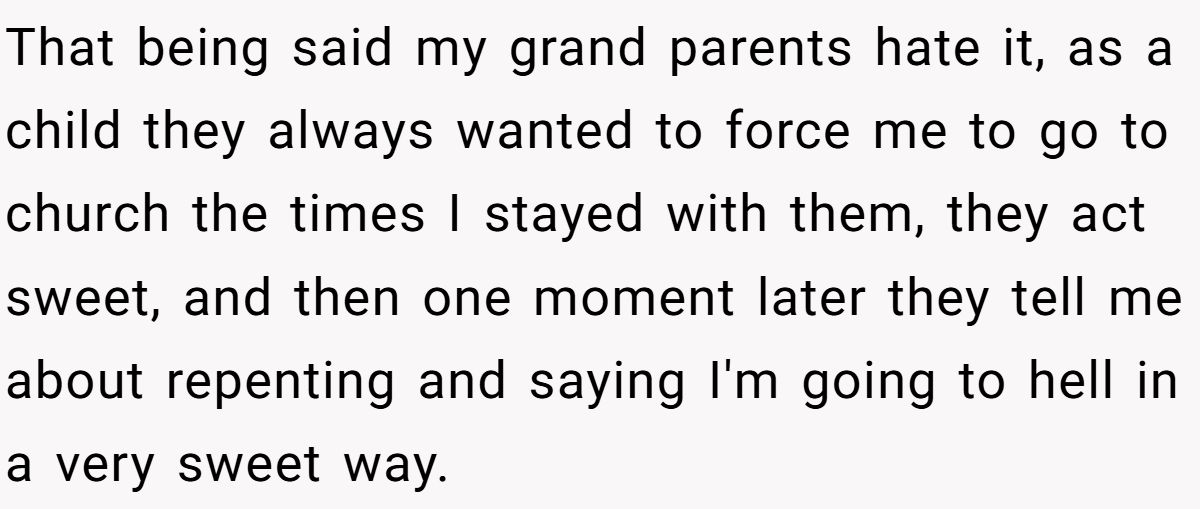 The Redditor has been unapologetically themselves since childhood. Heels, nails, makeup – it’s all part of their identity. But over the years, their grandparents have never hidden their disapproval. From guilt-laden church trips to passive-aggressive reminders about damnation, the judgment has always been there.