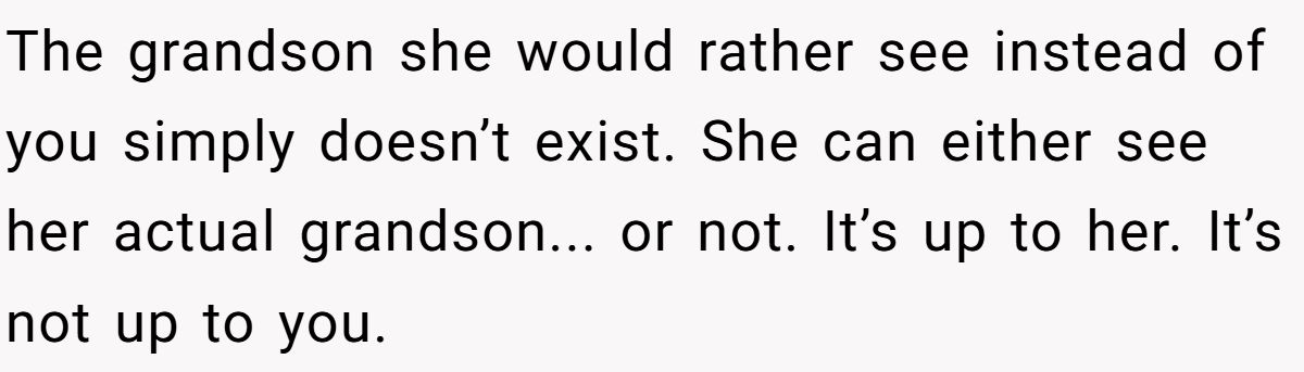 Could they find a compromise, like a virtual visit or a letter, so Grandma feels acknowledged without requiring self-erasure? Possibly. But their refusal suggests they’re done making themselves small to keep the peace.