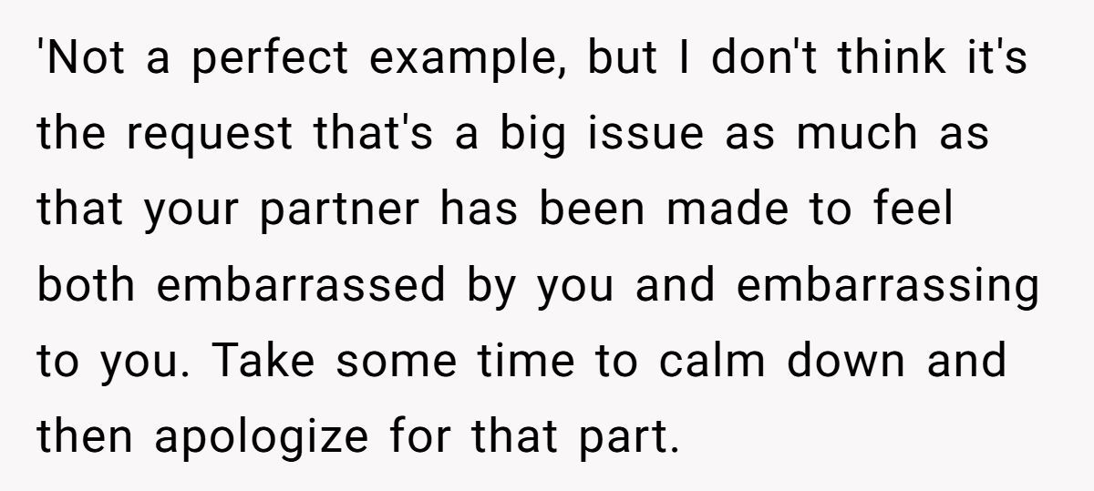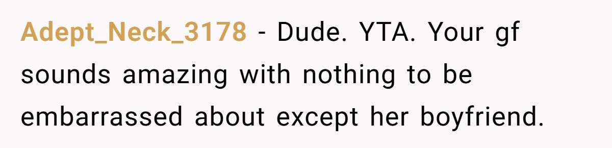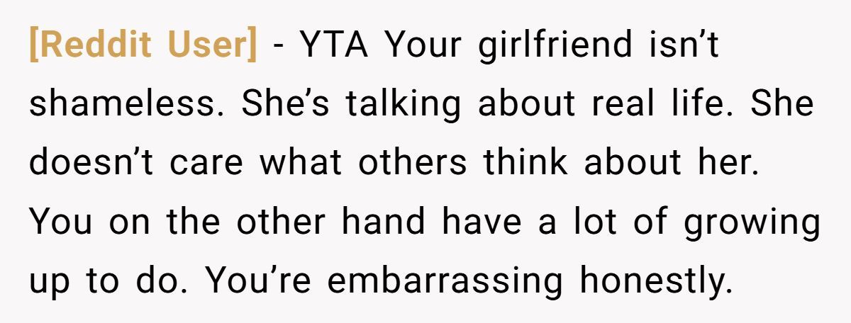 Commenters pointed out that while tone matters, the boyfriend’s discomfort seemed more about his own shame than her behavior: