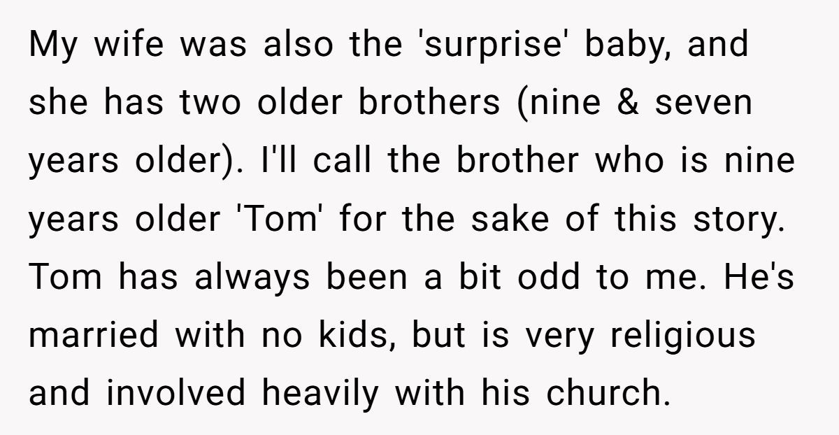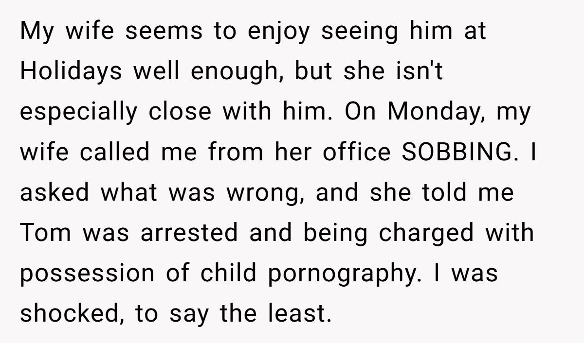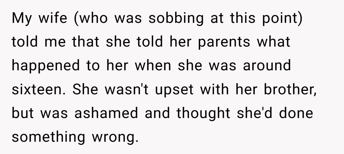 This Redditor, a 36-year-old father, explained that his wife is five months pregnant and was visibly shaken when she told him about her brother’s arrest. What truly stunned him was that she also admitted he had abused her when they were children.