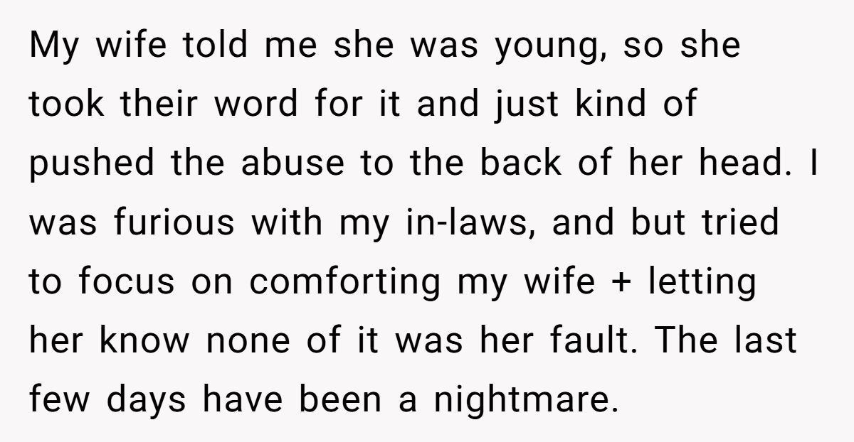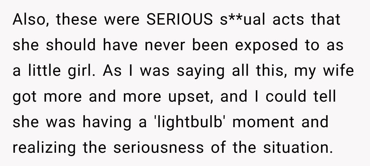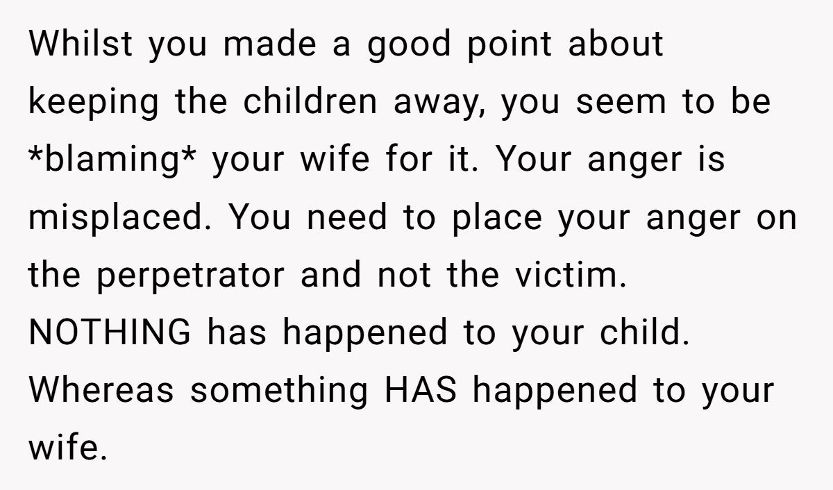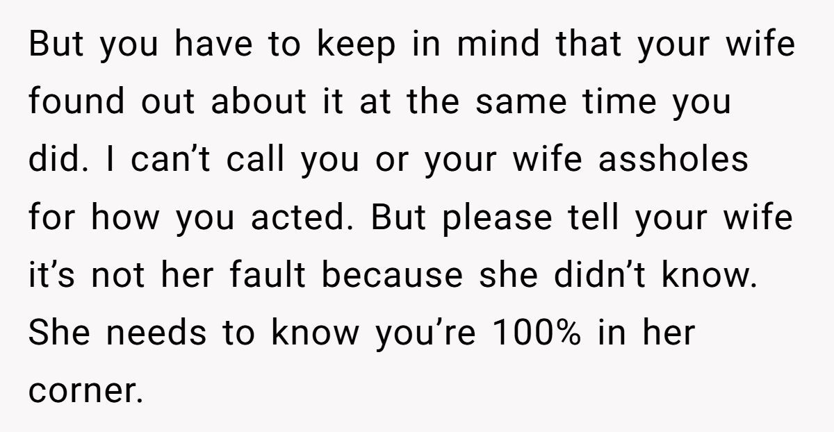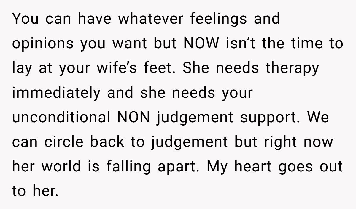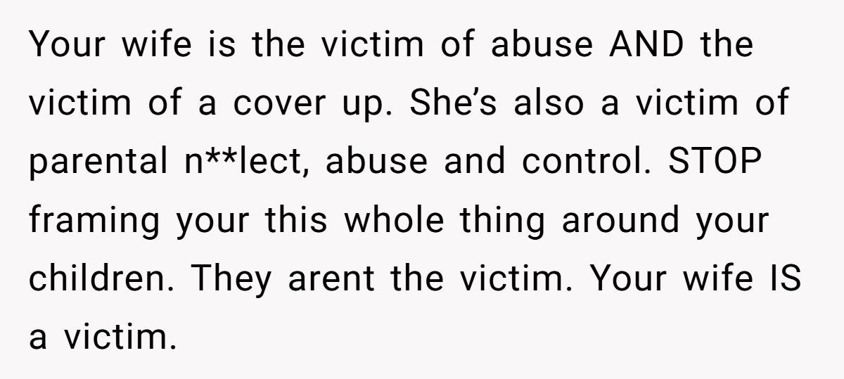 Commenters strongly supported OP’s protective instincts, noting the deep trauma his wife is facing and stressing the urgent need for therapy, not just for her, but for the whole family.