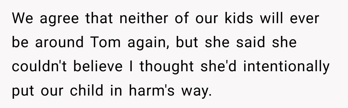 From the husband’s perspective, his reaction came from a place of fear. Any parent would be horrified to learn their child may have been around someone capable of harm. But from the wife’s side, the situation is much more complicated.