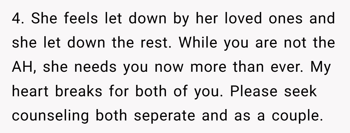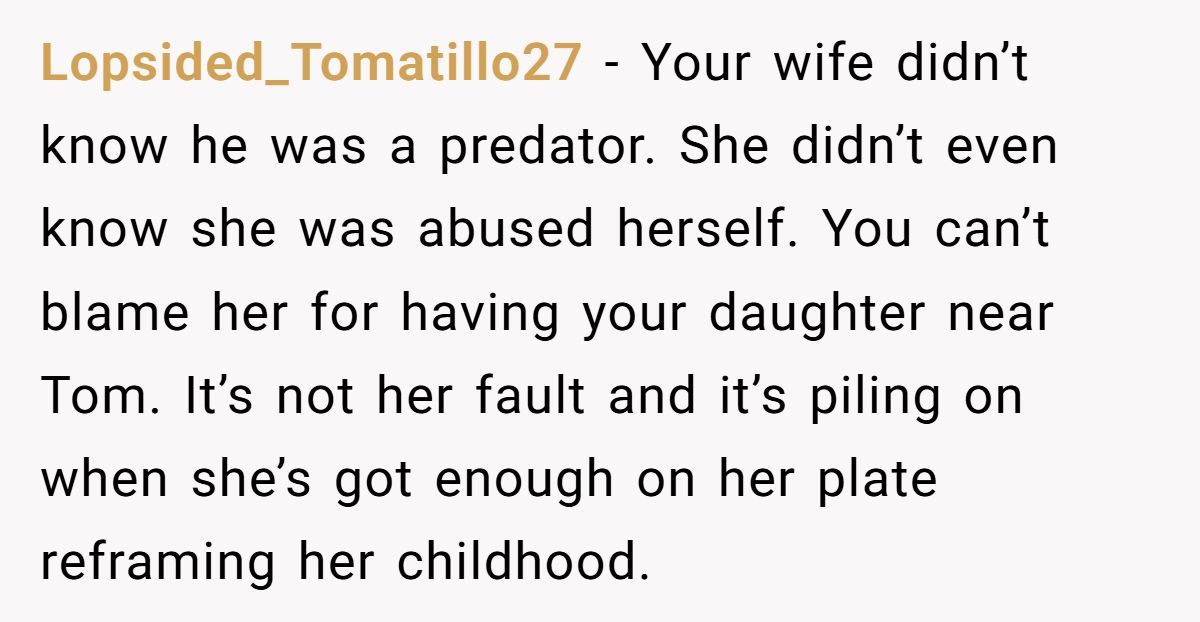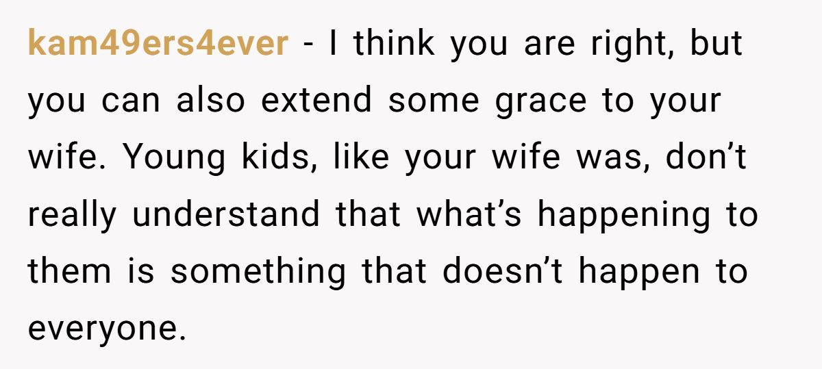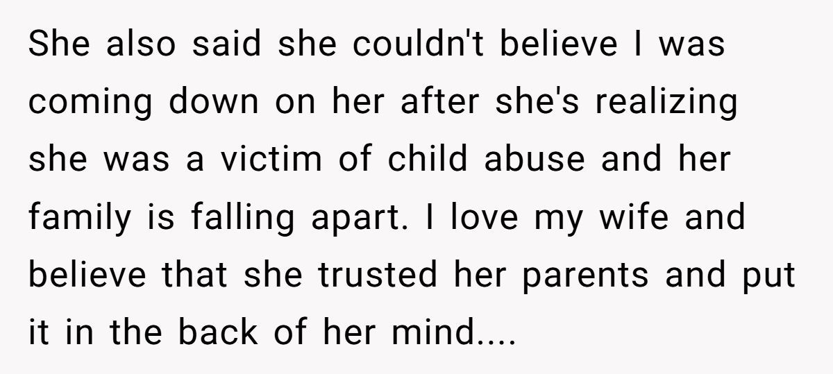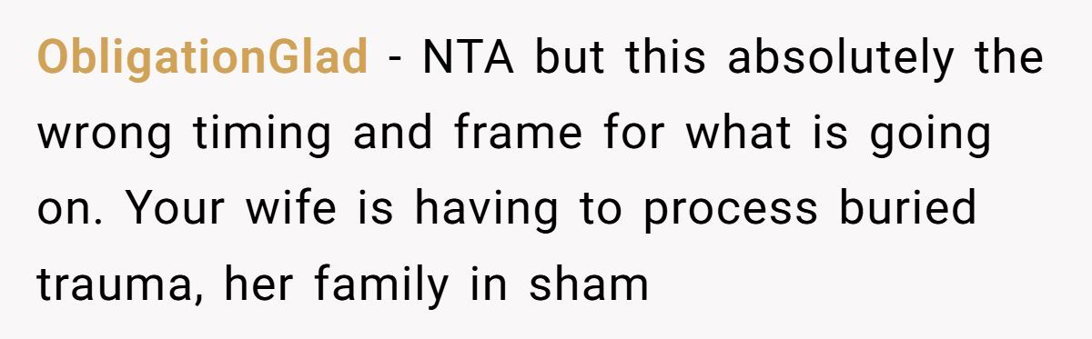 Several commenters empathized with the wife’s situation, emphasizing her suppressed trauma, the betrayal by her family: