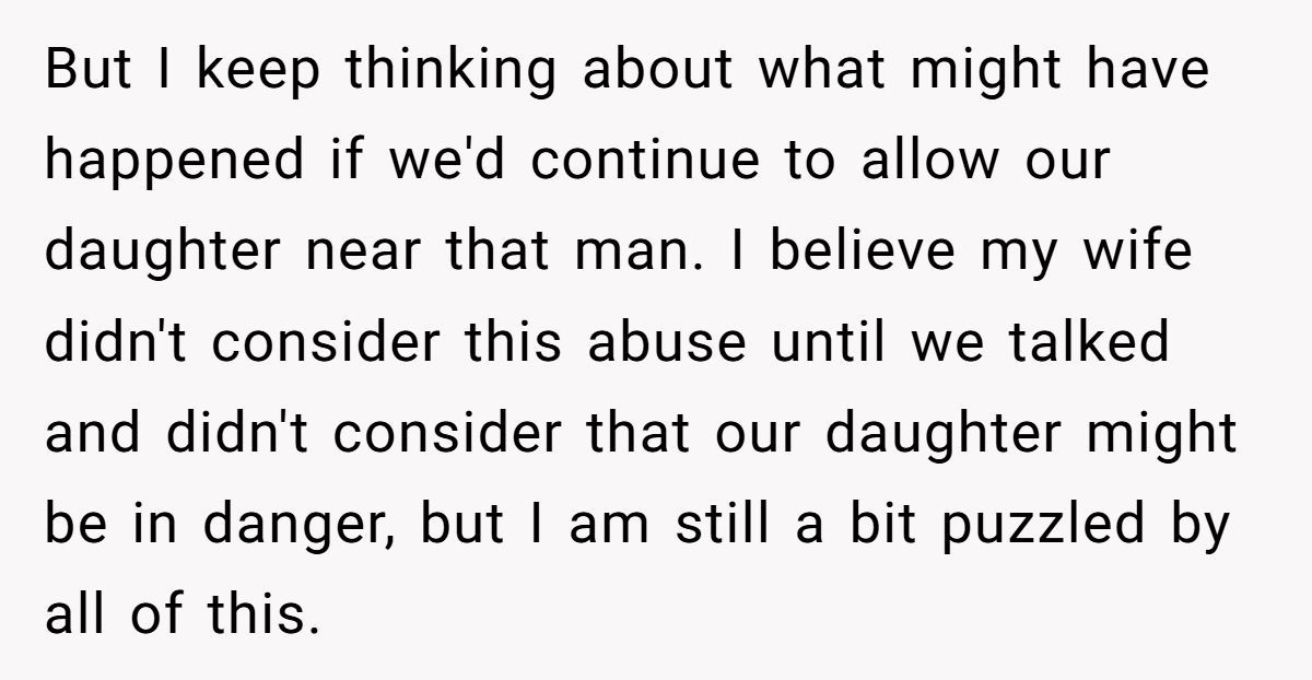 In that moment, everything blurred. The husband’s thoughts raced to their three-year-old daughter, who had spent time around this man. Out of panic and heartbreak, he told his wife she had exposed their child to a predator.