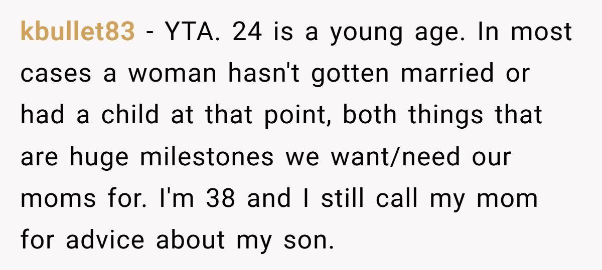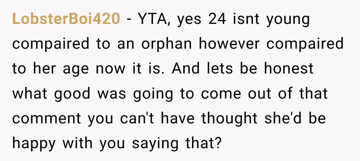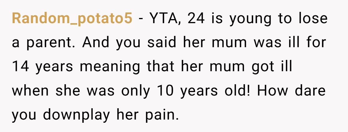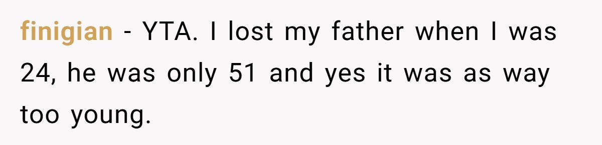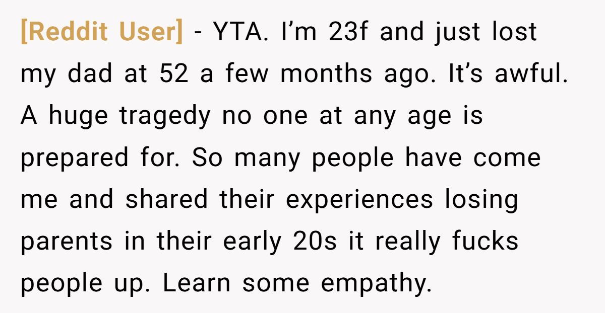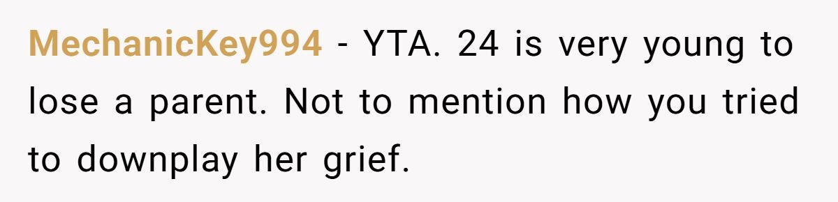 Others shared their own heartbreaking losses, emphasizing that 24 is absolutely young to lose a parent and slammed OP for offering zero empathy and making a pointless, hurtful remark.